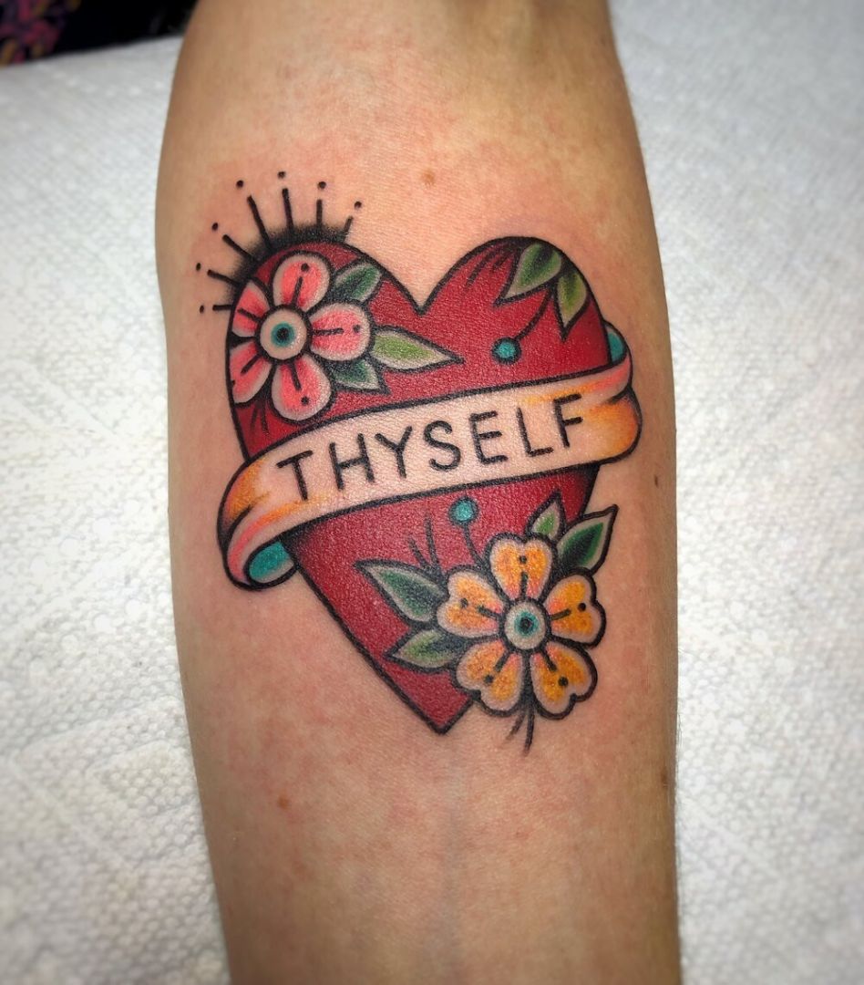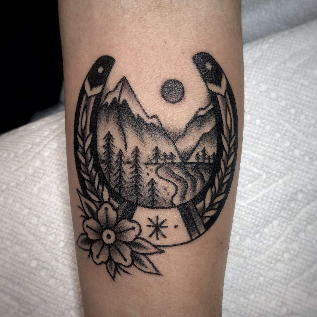 I specialize in my own version of American traditional tattooing! I use the tried and true back bone of traditional tattooing- bold black outlines and shading combined with bright colors- but add my own little spin with lots of fun colors and a bit more dynamic imagery. I love bright colors (but also black and grey, don’t get me wrong!) and creating art that makes people smile. I’m so very grateful for all of the amazing clients over the years who have trusted me with their super fun ideas! From Ron Swanson made of breakfast food to the old school “Mom” hearts we all know and love. As a female artist in a male dominated industry, specializing in a male dominated style of tattooing, it’s been truly amazing to see the support and love my art gets from all types of folks! I still can’t believe it sometimes. That people want MY ART permanently on their bodies! So wild. So grateful. However, tattooing isn’t the only form of art I create! In 2019 I started my very own athletic wear design brand called Fill The Well Athletics! @fill_the_well_athletics I’m so proud of this tiny little business where I’ve been able to combine my love of art and design with my passion for endurance sports and all things active. The brand is based very heavily in the idea that self-love is something that each and every one of us needs to embrace. I try to make designs that will inspire people to love themselves while also doing something good for their body- whether it’s running, cycling, climbing, dancing, walking, rowing, bird watching, you name it. If it makes your heart happy and helps you find self-love, I think it’s amazing. I hope Fill The Well can change the fitness community in a way that prioritizes self-love and health over looking the way society tells us is “attractive” or “right” or whatever they force down our throats. Loving yourself will change your whole world!