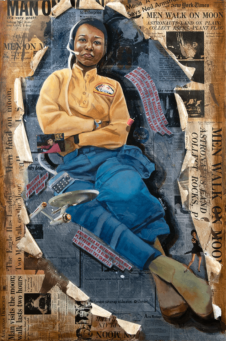 I have spent the last almost decade focused on telling the stories of women in history through my art. I would read their biographies, listen to podcasts, run internet searches, all kinds of things to learn about who they were, what they did, the social contexts in which they lived and why all of that is important to us in the present day. I would then build irregularly shaped wood panels, collage all of that information onto the background as a form of visual storytelling, then paint each portrait on top in watercolor. It was a process that guaranteed that each painting would be completely unique and highly informative. I loved seeing how people of all ages would engage with my work.