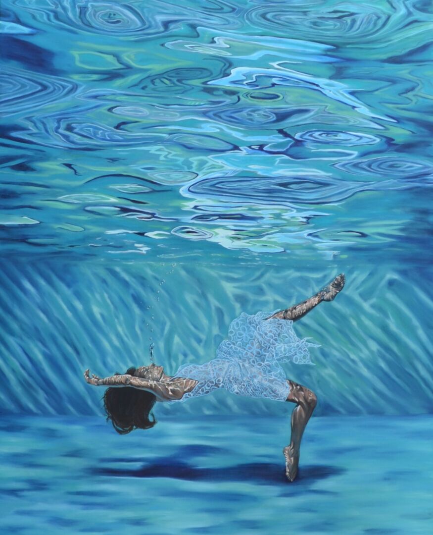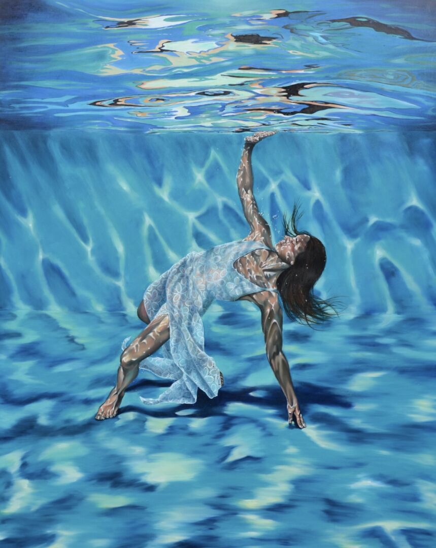 My work often incorporates the female form in water. I use oil paint on aluminum panels, with a focus on light and movement and the ways in which these elements distort and interact with the human body. I am fascinated with the figure and the shared beauty of our humanity. My paintings are about the human connection, to each other and to the world around us.