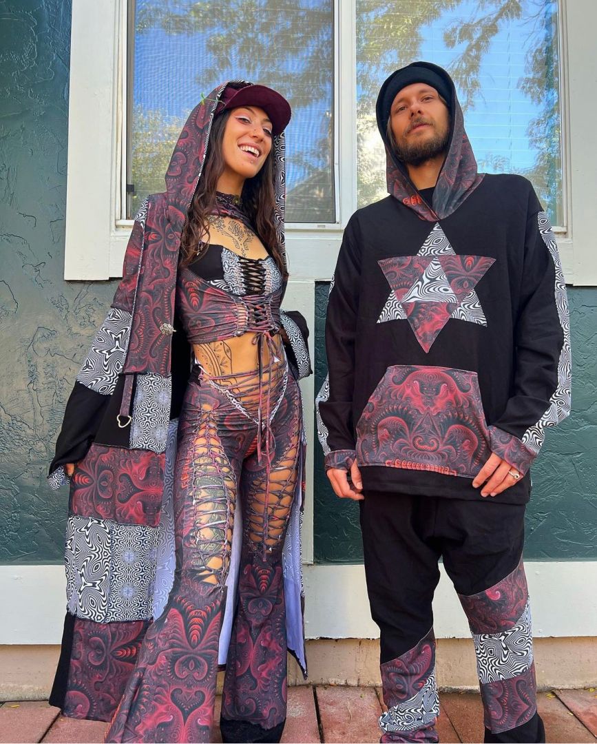 As I entered my junior year of high school and really got to thinking about my future. Nothing really came to mind besides making clothing. At the time I had no experience, but thanks to music festivals I had been exposed to some amazing fashion. My 17 year old brain began collecting inspiration from the clothing I would see at festivals and I started trying it myself. At that time I was just cutting and braiding clothing, but as I graduated high school and began a degree in Fashion Design at my community college, the wheels really started turning. To be honest, the main reason I pursued this career is because I just have always known it was my calling. Fashion has always been incredibly important to me, even as a child, and it became so clear as I got older that my purpose is to make unique clothing that makes people happy. And as I have gotten better and better at sewing over the past 6 years, and met my husband and taught him how to sew along the way, its grown into something so beautiful my 17 year old self could have only dreamed of.