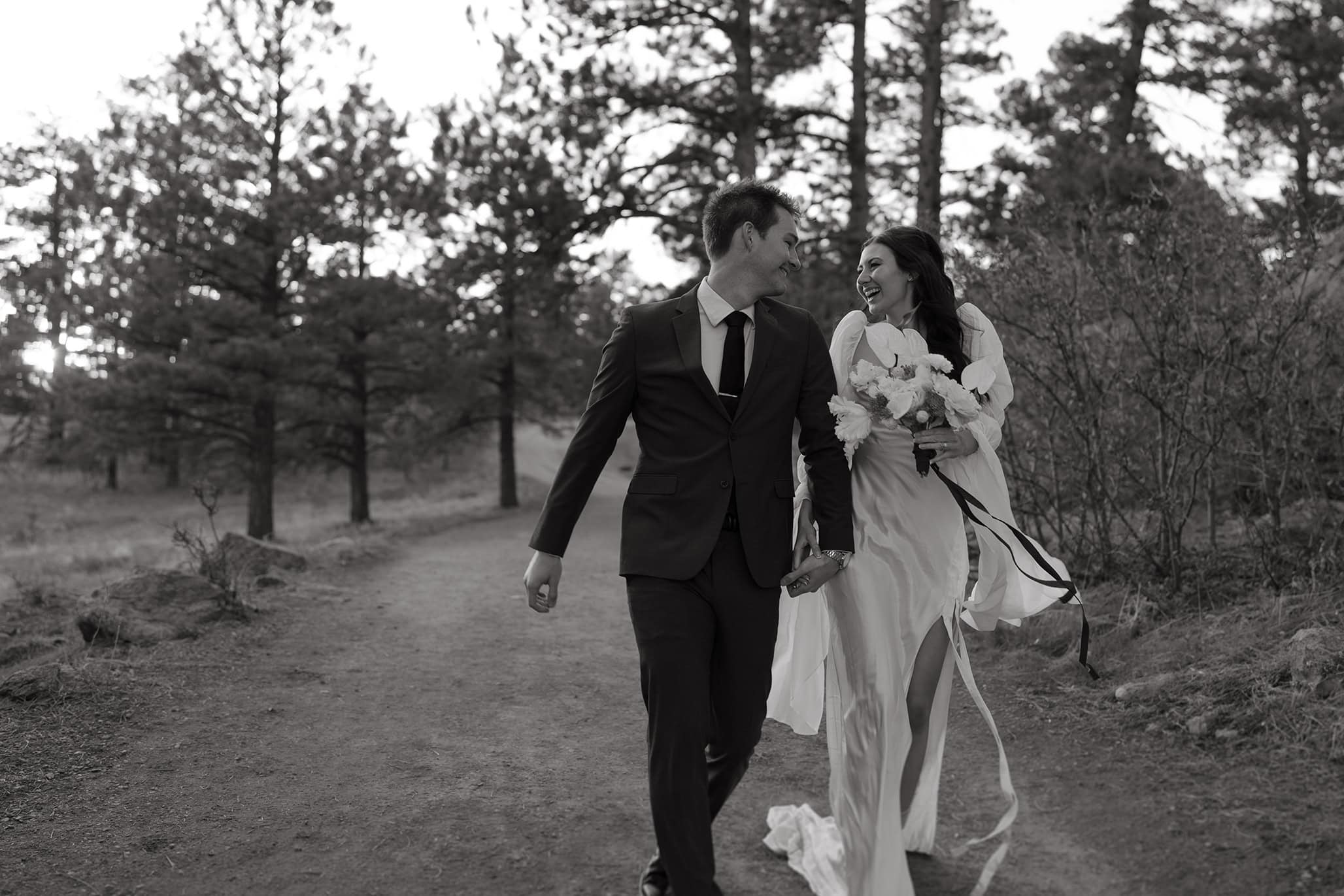 Outdoor elopements are a way for couples to embrace the freedom of a fulfilling wedding day experience in natural landscapes, and that freedom comes with a responsibility to take care of the earth. Traditional weddings produce an average of 400 pounds of trash, so eloping is already a step in the right direction in terms of reducing impact. But, I’m so glad to say we don’t just stop there. All of my elopement packages include a 10% donation to organizations working to further environmental sustainability efforts, and I have a very candid and open conversation with couples who work with me about the importance of the 7 Leave No Trace Principles. It’s one of the biggest parts of my business, because if we don’t take care of the landscape we recreate in, those places are at a grave risk of losing what makes them special. Eloping outdoors is such an incredible thing we have the choice to do, and I never want to forget just how lucky we are to have access to these beautiful spaces. The landscapes my couples elope in are home to rushing rivers, wide open meadows, towering mountains, quiet wildlife, and an atmosphere that just can’t be replicated. If these lands get destroyed because people disrespect them over time, that damage will be irreparable. I’m so proud to be an advocate of Leave No Trace, and I get to work with some of the most amazing couples who truly do care about keeping these outdoor spaces pristine and beautiful for years to come. Some of the practical ways we work together to make sure that happens is by staying on trail and durable surfaces while hiking, keeping our distance from wildlife, and never doing anything that emulates destructive activity just for the sake of a cool photo such as standing in a wildflower field or using a confetti canon. For couples who invite guests to celebrate with them, I provide copy and paste email templates for them to share that help explain why Leave No Trace is so important. I’ve spent many hours preparing free resources for couples that want to have an elopement that’s as eco-friendly as possible by compiling a list of my favorite ethical and sustainable wedding dress brands, providing alternative ideas on how to have a fun elopement without the traditional wastefulness, and suggesting sustainability-focused accommodation options.