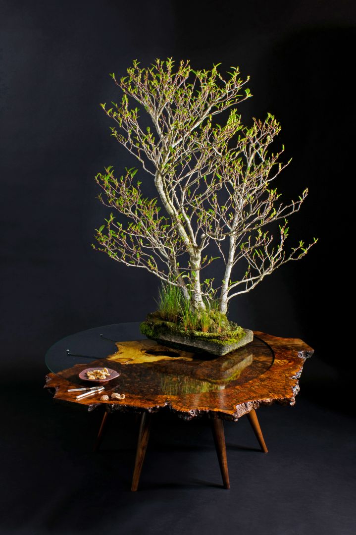 Custom furniture and bonsai stands are my art. In both I strive to source the most inspirational material and often highlight natural “defects”, or live edge, of the tree as ornamental decoration. I source my material from the urban forest in a practice know as urban logging. This involves milling city and orchard trees that are removed; in the past such material would be chipped up and thrown away. I have gotten where I am today through luck and perseverance. To me luck is simply being aware of opportunity when it is available and perseverance buys time for opportunity to develop. For instance I practiced bonsai as a hobby before I crafted bonsai stands professionally. My pursuit of bonsai exposed me to the thriving PNW bonsai community and provided the knowledge to appeal to this market. I reached out to bonsai professionals in the region, and luckily my craft found their support.