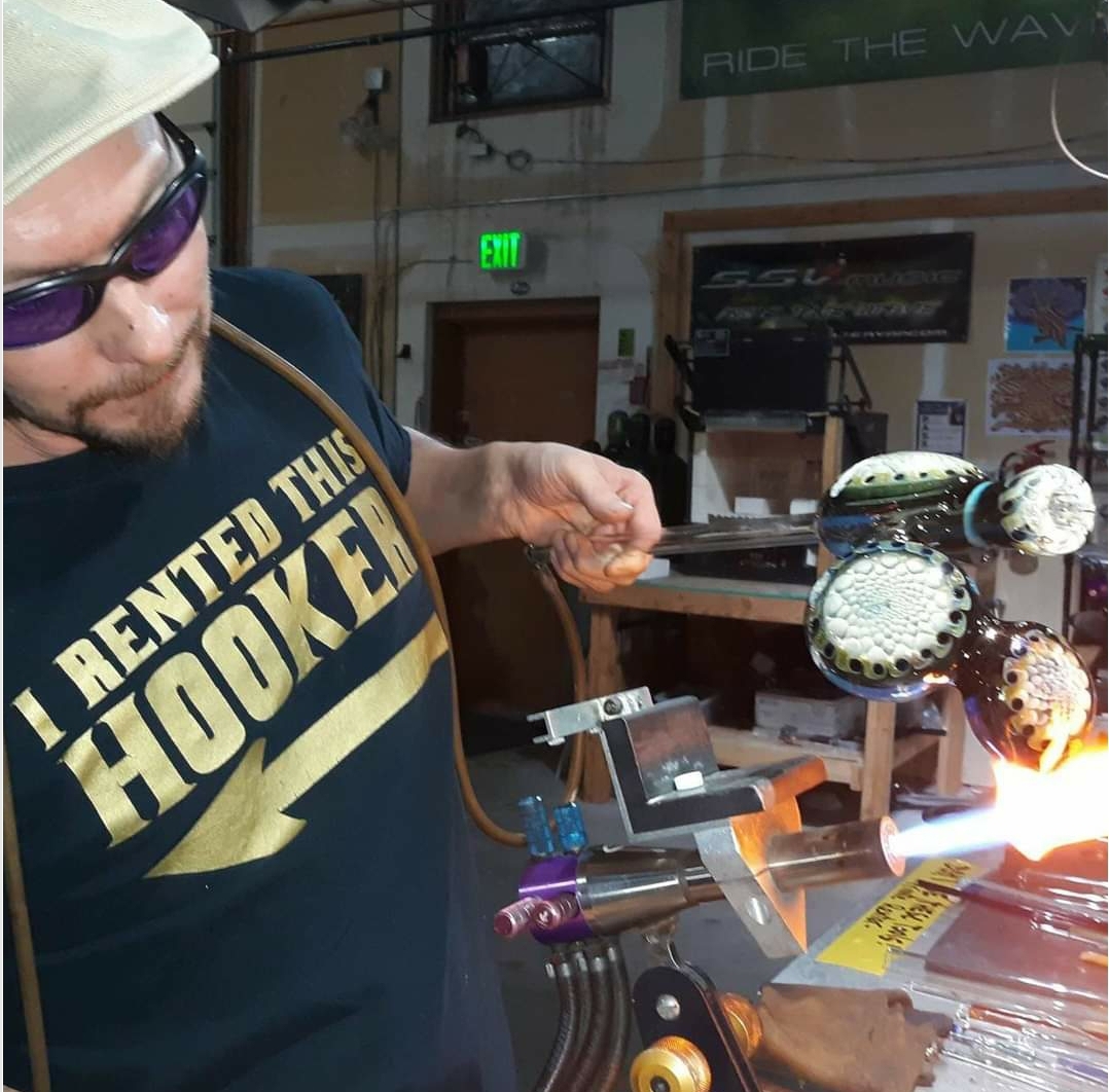 At the beginning of my career i was unsure how any of the business workedor if i could survive finacially. I began by reading books on tattooing and teaching myself-1995. I saw the coming trend. I did well and discovered glass blowing and did both for a few years before moving completely into glass. Many years of long hours which i loved. It consumed my life and was rewarding, but i lost some important relationships and missed some years of life. Eventually after 22 years in glass, i felt i had hit a ceiling creatively and my interest waned. Realizing i had spent the majority of my adult life in a studio, i decided to pursue music and travel, develope social skills and enjoy what the world had to offer, which payed substantially less at first but was a good trade after all. I am now learning to paint-and balance glass, painting, digital media, music, and relationships while pursuing my love of travelling. As far as my brand~my brand stands for Freedom. Freedom to explore whatever you believe you deserve. Using our Spirits to download higher frequencies into this reality-with screaming Hendrix guitars and shooting paint out a shotgun, to rally against all forces that continue to dumb people down, oppress, and otherwise stifle and enslave people as a means of control and profit, whether finacially or mentally. This brand stands for lifting others up and breaking down old sytems and ideas that no longer serve humanity, awakening our full potential and not settling for what society subliminal teaches is normal. I want to help create a new idea of what life is and can be, And the learning is in the doing. Take an educated risk into the unkown for everyone who cant.