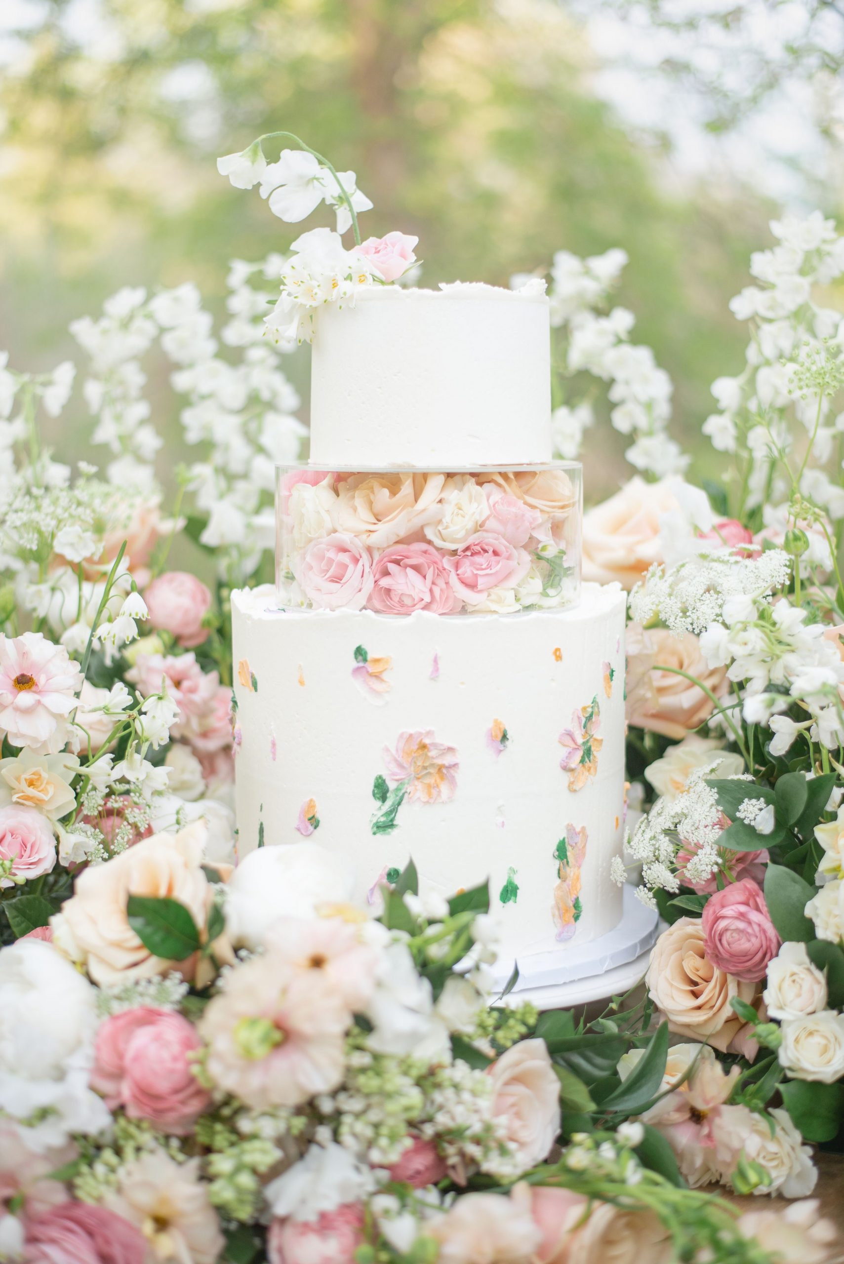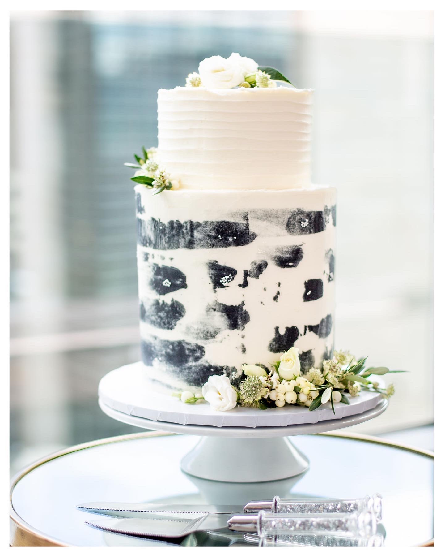 When it comes to my actual cakes, I have a very simplistic, minimal design style. I don’t create cakes covered in fondant simply because it’s not my style & take pride in what I can create using buttercream & other decorative elements. Colorado i such a laid-back, easy-going state so the way I design cakes aligns perfectly with my customers. Think of white cakes with pops of color from beautiful florals, or semi-naked cakes where you can see parts of the cake layers peeking through the buttercream, or tall cakes with a beautiful floral stencil design to add texture & pattern.
