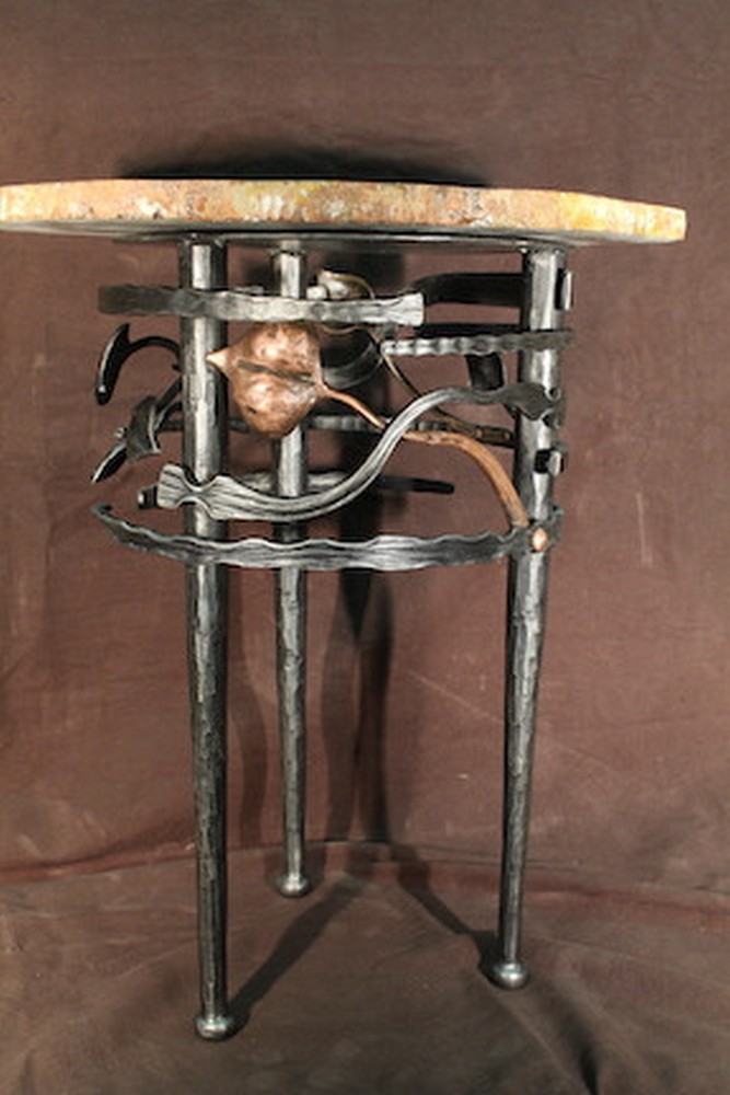 I did custom wood projects and the ability to make my own tools and hardware for my works seems to be a good idea. Long story short – wood and fire don’t play together well in the same small shop and I ended up focusing on metal. I became what is now referred to as an Artist – Blacksmith since I decided in the very beginning to do unique and hot forged works of my own design. My focus has always been on larger works of an architectural nature – I like the bigger pallet of railings / gates / furniture / hardware, that allow me to incorporate more of nature into the designs. Coincidentally, much of blacksmithing as regards functional pieces, has its basis in nature. Scrolls , twists, joinery, and many other parts of architectural works, are organic in form and are derived from vines and other plant based imagery. If done correctly – these design elements appeal to us because they have the symmetry we relate to in our natural environs.