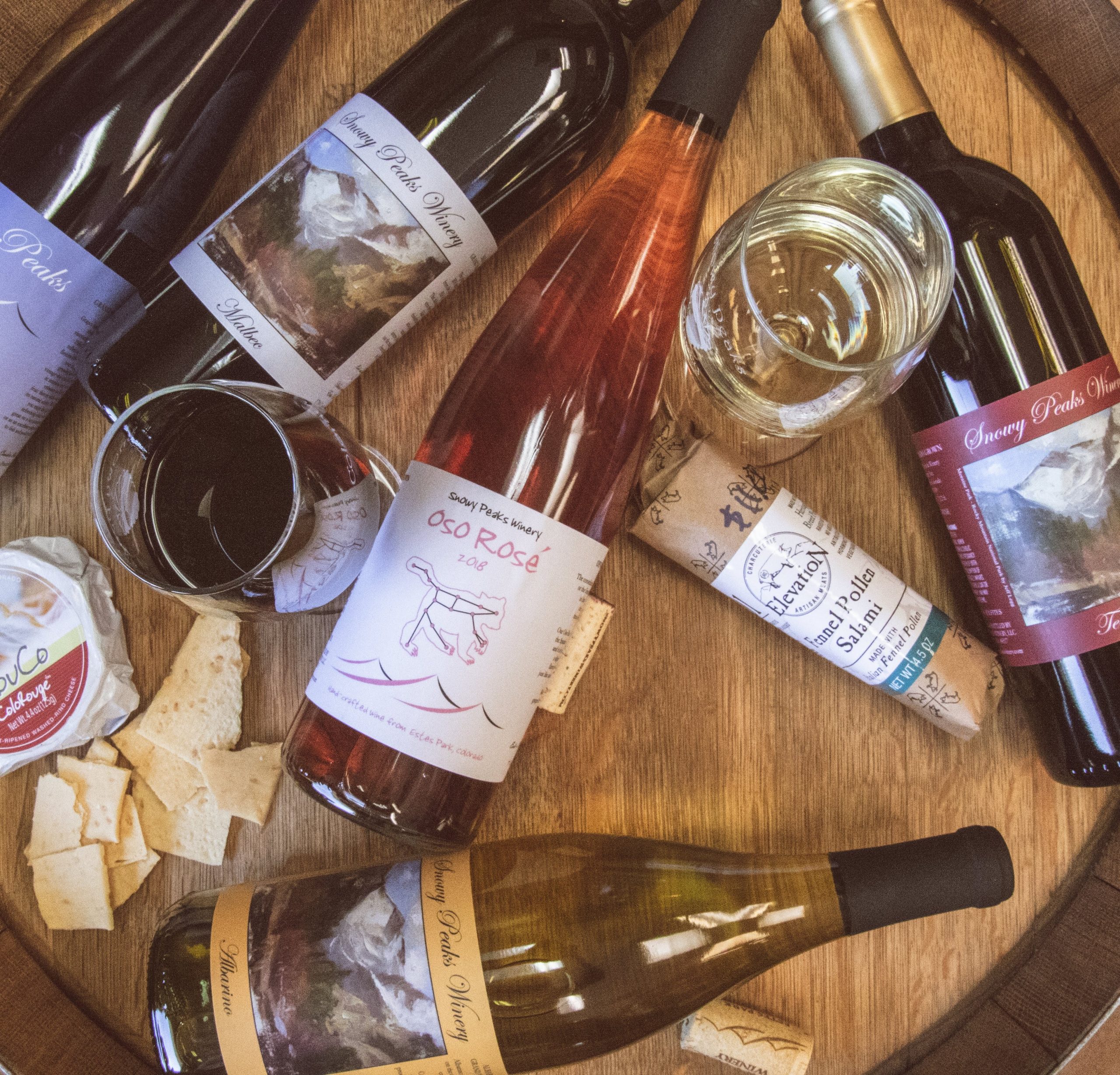 Snowy Peaks Winery creates handcrafted wine from grapes grown in western Colorado. We have a tasting room in Estes Park where you can sample our wines along with wines from several other Colorado wineries. We have an extensive wine list and try to help guests find a wine they love. We also carry cheese, salami and other food products produced in Colorado.