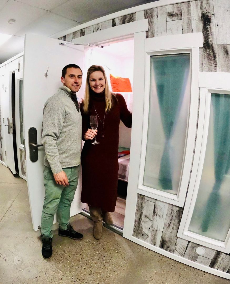 Cohabit was over 3 years in the making. My husband, Bret and I have travelled and stayed in hostels around the world and always knew we wanted to create something similar in our community. We live in an expensive resort town that mostly caters to the wealthy. There was a need for an affordable and more inclusive alternative. I began brainstorming ideas for a hostel or mirco hotel that would allow everyone to enjoy our beautiful mountains. One of our challenges was making sure we were affordable but also offered guests a little more privacy than traditional hostel bunk rooms. After much research, trial and error, we landed on the pod concept. We had the pods custom designed and built in Denver, we settled on an ideal location in Avon and the rest is history. Bret and I spent many years in the hospitality and customer service industry. When we coupled that with our love for minimalist travel and community, it was a natural transition to start our own pod hotel.