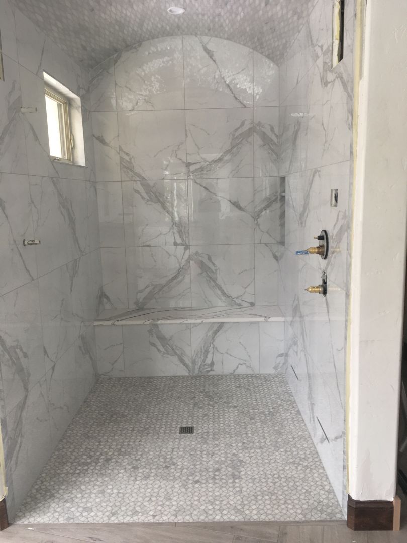 A large percentage of “professional” tile installers only know what they’ve seen others do. There has been a serious lack of education in the tile industry. There are specs and rules to go by , but most guys (and girls) out there don’t know what they are, or even that these rules exist. Let alone where to find them. We are fortunate to live in a day and age where information is easily accessible, although it is not all reliable. I learned a lot at a National Tile Contractors Association event (where I immediately joined the association) about proper installation and the liability of doing it wrong. A couple months later I learned even more at manufacturers 2 day training event. After finishing this training I changed everything that I was doing. I try to do everything by the book and feel like this has elevated me to the top of my trade. I felt like I already had the skills to do creative and beautiful work, but now the real beauty is below the surface where no one will ever see it. Like so many things in life, its all about how you set yourself up. The prep and planning can make all the difference. When a custom tiled shower is properly prepped, planned and executed there should be nothing to look at basically, nothing odd or out of place. Nothing that looks like an afterthought or any near misses, and certainly no cracked corners or discolored grout for the life of the shower. When done properly no water will ever get into the assembly and that means no yucky moldy corners. Ever