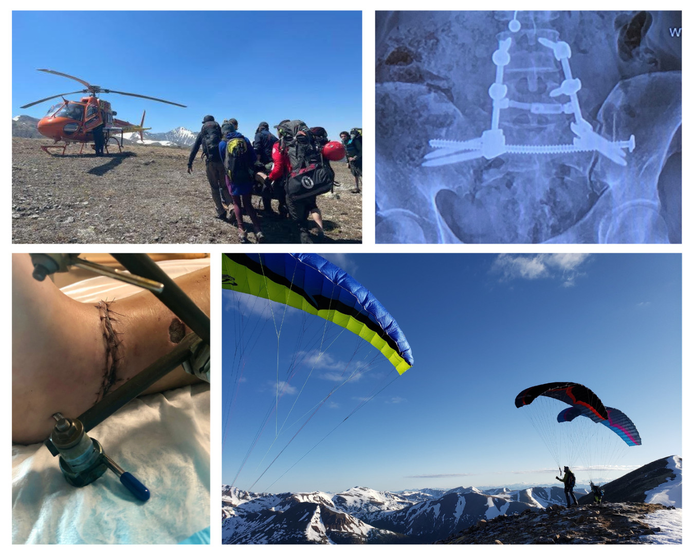 IIn June 2021, I was hospitalized after I had a speedflying accident. I broke my pelvis, back, sternum, a bunch of ribs (four got plated), and destroyed my right ankle. Since I was at the top of a 12,000+ ft mountain, I needed a helicopter rescue that day, and a number of surgeries over the next 14 months.