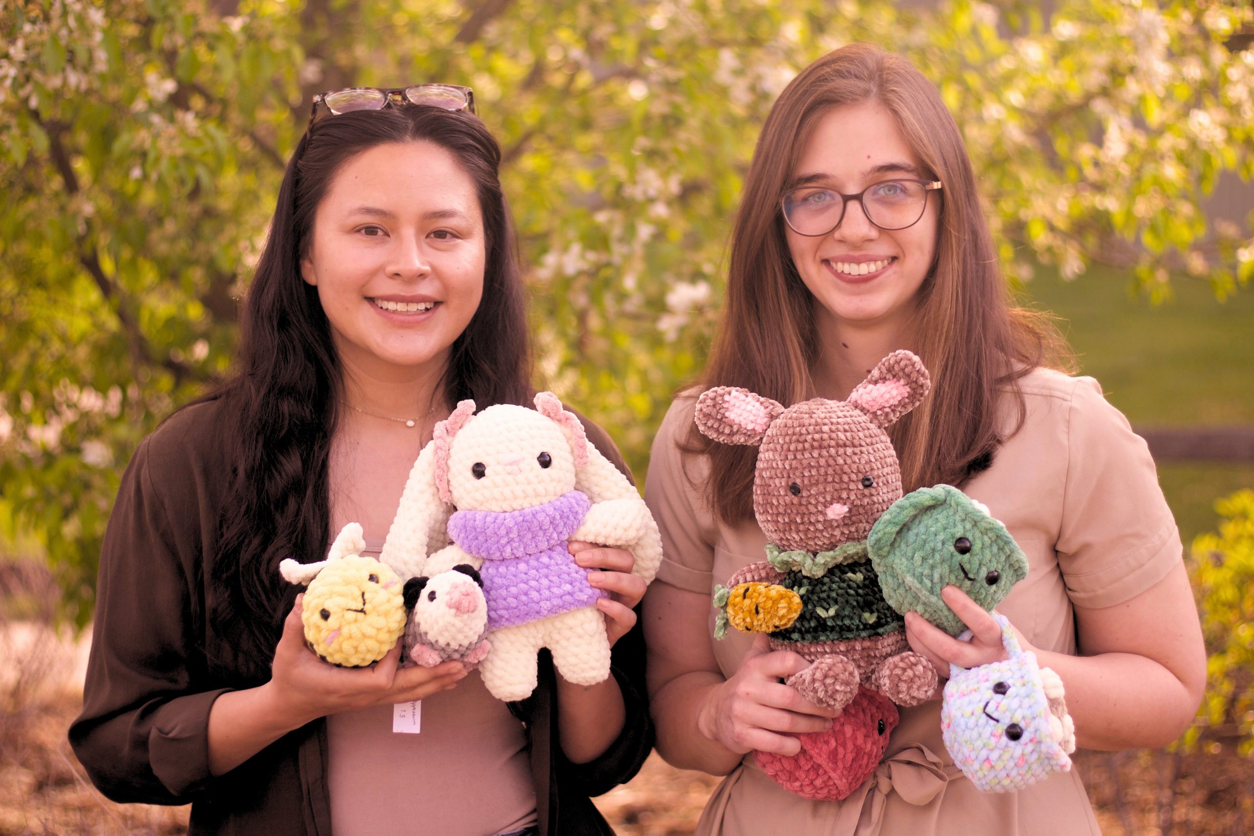 We both enjoy crocheting as our hobby. Haley learned knitting from her Aunt but after watching YouTube tutorials about crocheting, taught herself to crochet and was hooked!. Diana started crocheting at the age of 8 after her grandmother taught her how to crochet her first beanie. Over the years, we have both improved our skills by using free patterns and looking through books. From there, it was trial and error. Haley has always had the idea of selling her items in the past but it was harder to commit to it alone. Diana on the other hand, had always had an entrepreneurship spirit and had sold some of her crafts in the past before moving to Colorado. We met each other here in Boulder and found out we shared this hobby which led to getting together at coffee shops to crochet for fun. One day we started talking about selling our products since we love crocheting but were running out of space to display our crafts at home. We were so excited about the idea and it snowballed from there. We came up with our name, designed the logo, filled up our inventory, and started looking into markets. The idea started in early October so we were targeting markets in December for the Christmas season. That was when we found the NoBo Art District First Friday Markets where we set up our first booth to sell our plushies. It has definitely been easier for both of us as we keep each other motivated. Currently we are still participating in a few First Friday Markets this year and working on looking for ways to expand and try to get personal requests.