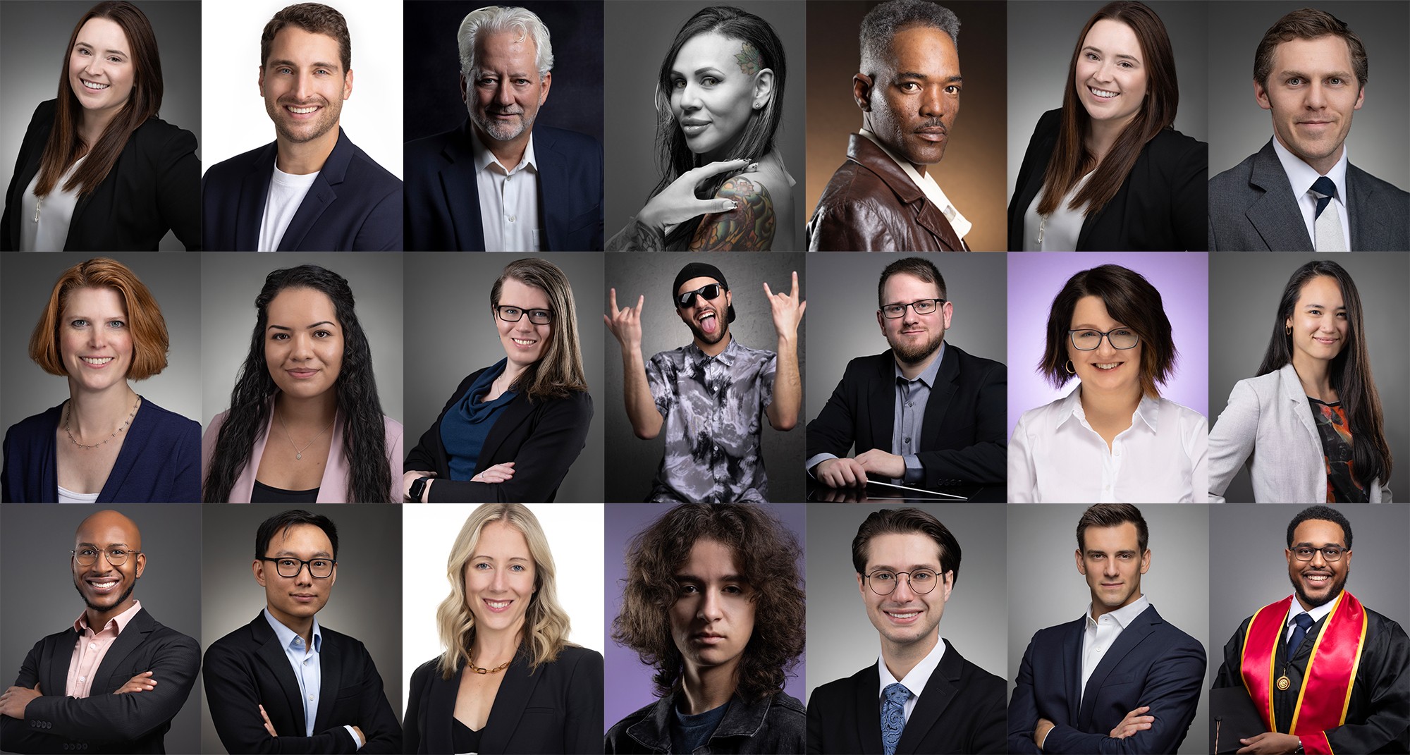Elvis Sherman, I took all the photos myself. The collage photo is a bunch of headshots I’ve taken of people within the last year or so. I have signed model releases for all the people in the collage.