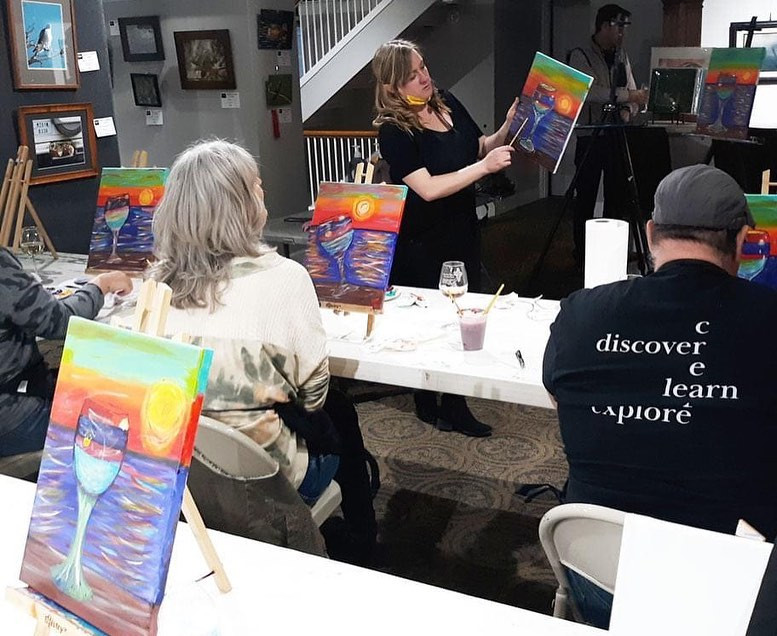 I decided to open up my own “Paint & Sip” business because I truly believe everyone is an artist. Most people that join my classes have never picked up a paint brush in their life and they’re usually very critical of their ability to do the class before it even starts. I absolutely love seeing their face when they start getting into their painting and saying things like “wow! I can’t believe how great this looks!” Those are the moments that keep me teaching classes. I decided that I wanted to involve my community into my classes so after a lot of brainstorming I decided to put a spotlight on local non-profit organizations at every class. I would pick a different non-profit to come to the class and during our dry break, they would speak about their organization and how the class can get involved or donate if they’re interested in doing so. This is why I have “Create Your Community” in my Evolve logo (which is my business’s name). I chose the name Evolve because in art, we are constantly growing and learning. By including the local non-profits, my goal is to Evolve my Community as well. I opened my own restaurant in May of 2021 and am looking forward to introducing Paint & Sip classes to the residents of Westcliffe Colorado. I recently did a survey on social media and learned that so many locals here are interested in art classes so I believe Evolve will be a hit in my community!