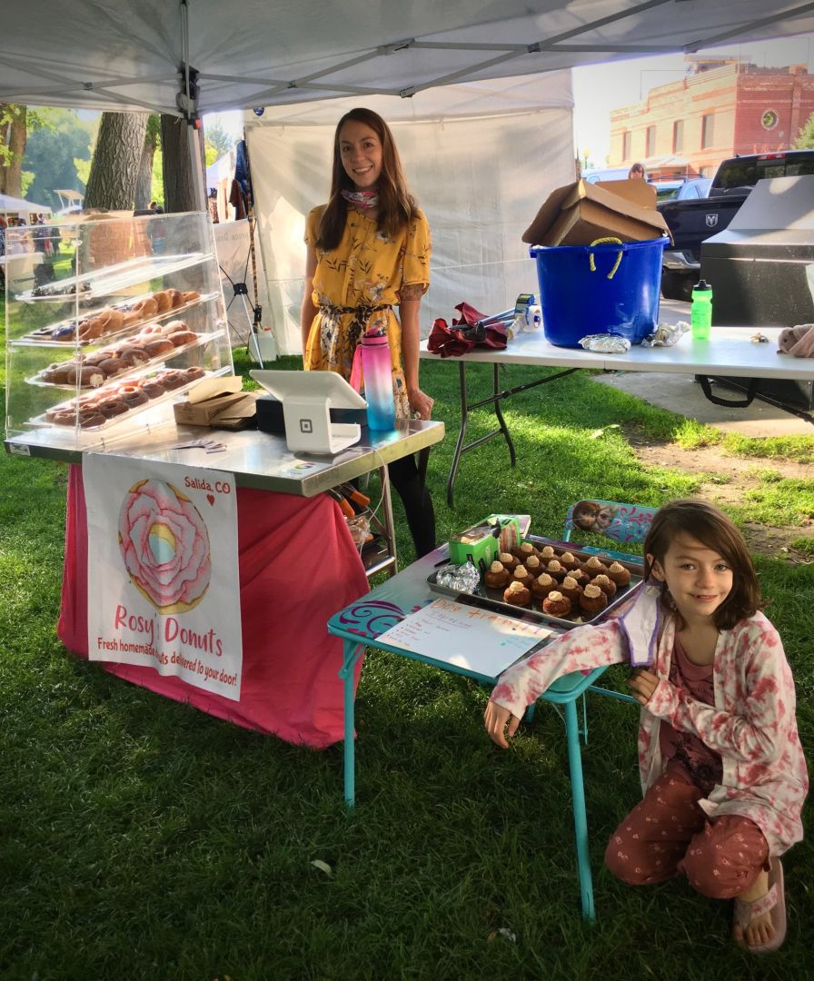 I started my business, Rosy’s Donuts, during a crazy time – earlier that year Covid shut down the schools, and I had to leave my job as a baker at a restaurant to homeschool my daughter through the end of kindergarten and all of 1st grade. Since I suddenly had no income and had to homeschool full time, I had to figure out how to make money from home. I’ve always loved baking and have been in the industry since I could first work, so naturally selling baked goods out of my home was the best option. There really were no good donut options in Salida, so I decided to learn how to make them. To survive, to pay rent, and to be able to stay home with my kiddo!