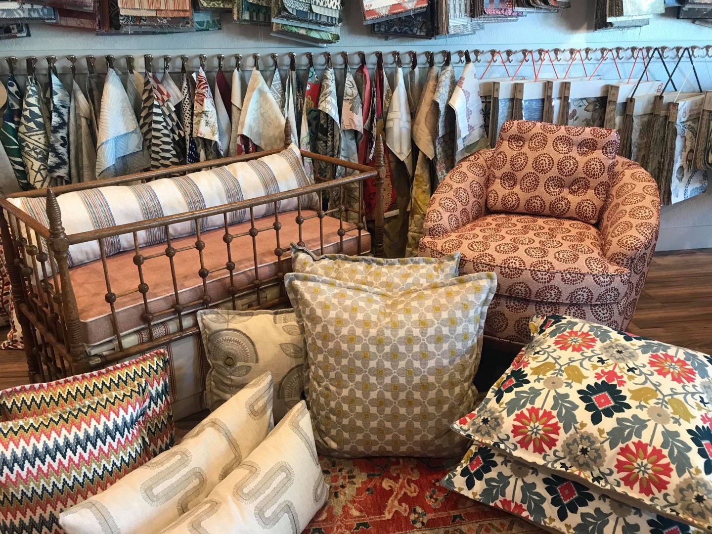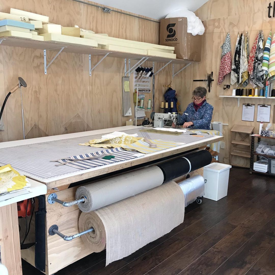 I never claimed to be the best upholsterer in the world, but I set out to give people a different experience than the upholstery shops that were currently available. Women, especially older women, didn’t feel comfortable going to them. It was usually an older man who didn’t listen, would only do things the way he thought they should be done, and don’t even think about doing anything outside of the box, and getting creative would be total nonsense. I say yes to almost anything. Some people come in with limited knowledge of furniture, fabric, design, trends, etc. We talk endlessly about why, how, needs, wants, etc. We want our clients to feel really good about what we design for them. We create furniture, drapes, bedding, cushions, pillows, and also do interior design when we have the time. We did an entire restaurant in 8 days. We blocked out a month for the job, but once we got started we just decided to set up shop at the restaurant and work from 7am-9pm through the weekend and surprise the owner. They had to close for a week due to city related construction, so hey what the heck. We are proud of our little team of women. It all sounds so fun and we hear frequently, “wow it must be so fun to work here”, but let me tell you it was not easy, and it is not easy. It is WORK! I have cried rivers of tears over this business. I have worked till exhaustion. There was a time I started work at 3am because I just couldn’t keep up. I would work in my pajamas, and in my full state of exhaustion, I knocked over a can of stain on a finished piece kind of exhaustion. The challenges? Have I overcome the challenges? Do you ever overcome the challenges? I’m the main upholsterer because there are no upholsterers to hire. We had one guy that really turned our place upside down. We decided then that I would stay in the roll of upholsterer and the other ladies would cover the other parts. It’s a dying art in this country and if you can upholster, why would you upholster for someone else? I have carpel tunnel pain in my hands sometimes because of the work, but hey, I am so unbelievable proud of what we do and what our company stands for. We bring our best every day. We support each other at work and beyond. I would never claim to have done all this on my own. I have amazing women working for me.