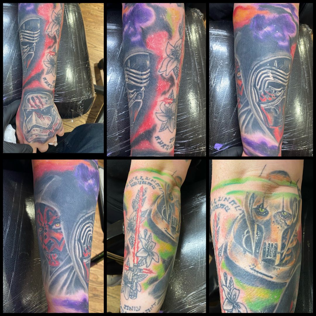 I love doing a fresh original tattoo, but I feel most accomplished when I do a cover up. This is what I’m known for most. The look on someone’s face when you get rid of something they have hated for years is an amazing feeling. I love the challenge of taking a poorly done tattoo and transforming it into something beautiful. I have a traditional tattooing background however, I tend to lean towards new school and neo traditional styles of tattooing. I started my career in 2006 and it’s been a crazy 16 years in the industry filled with ups and downs. If it’s easy it’s not worth it. Overcoming challenges and hardships is what makes you who you are in this game of life. Hard work and the willingness to do what it takes to overcome any obstacles, like my mother instilled in me, is how I’ve made my success. “Life isn’t fair so pick up your britches and do what it takes to make it” (Lorinda Beckley aka my mom)