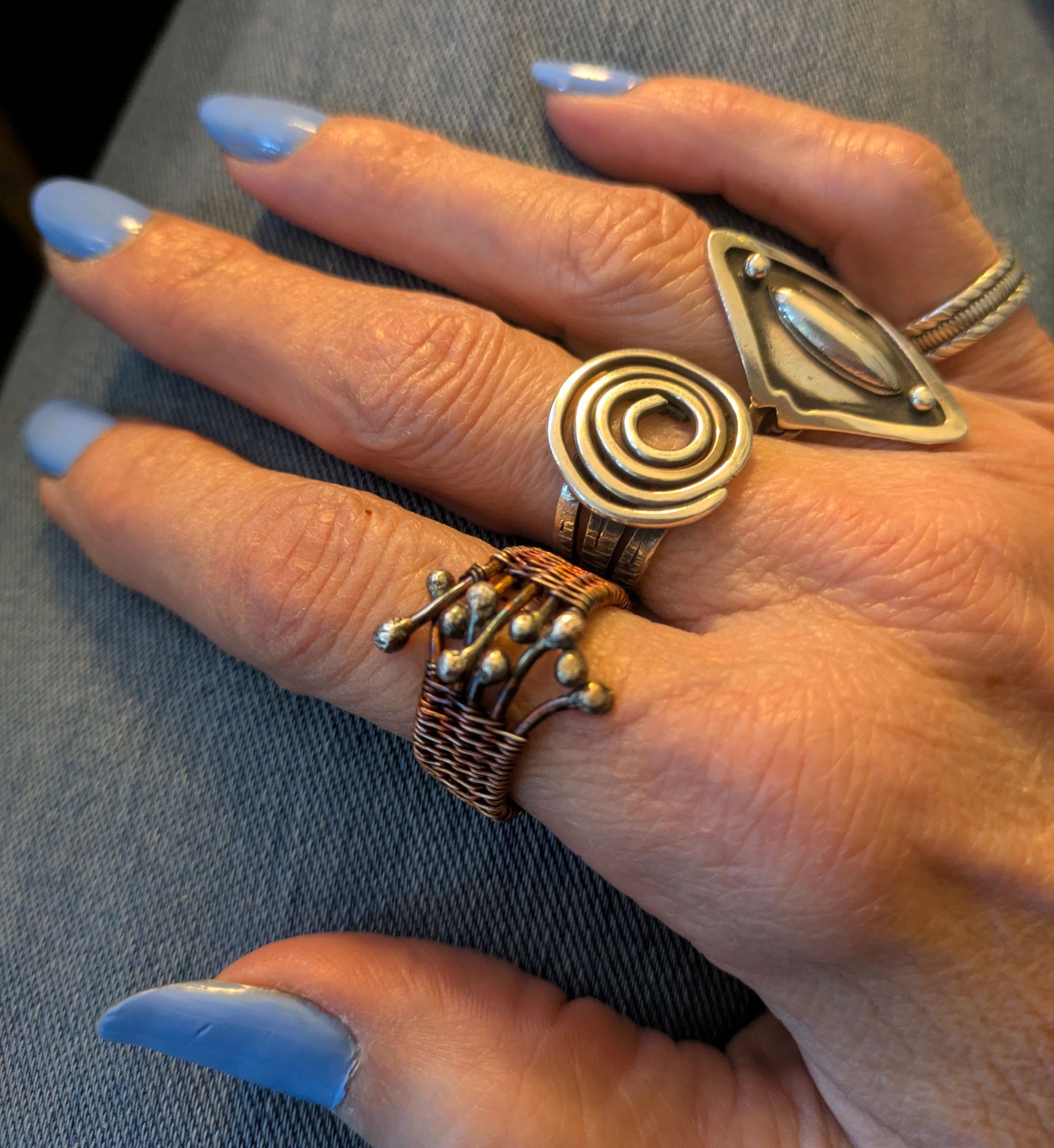 With my jewelry, I make pieces I personally love to wear. Everything is hand-fabricated, one at a time, with a bit of a boho vibe. A lot of my designs are everyday pieces, with some more intricate ones for special occasions. Living in Colorado, the casual pieces definitely get the most wear! I just really enjoy letting the materials shine and keeping things natural and approachable.