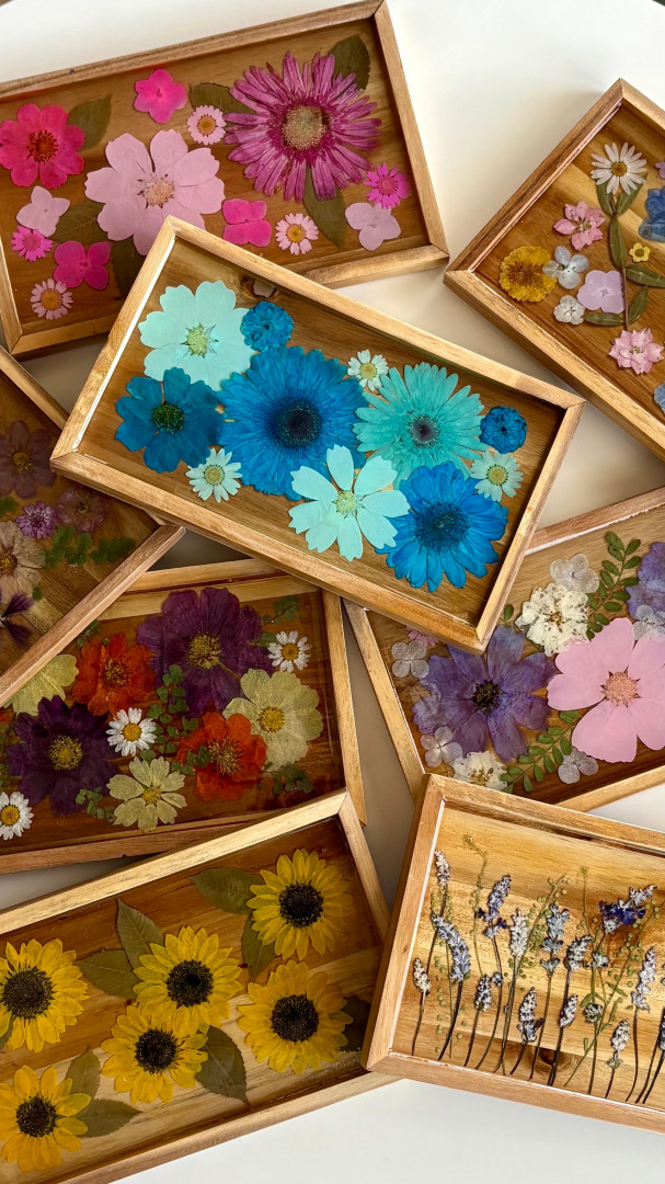 That dream came to life through my real flower resin art, especially our gorgeous wood serving boards. Each one is made with acacia wood, real dried pressed flowers, and countertop-grade epoxy, making them food-safe and durable (up to 120°F). These personalized boards are more than just charcuterie trays—they’re functional, heartfelt works of art, perfect for gifting or hosting. Truly, anything your countertop can handle, these boards can too.