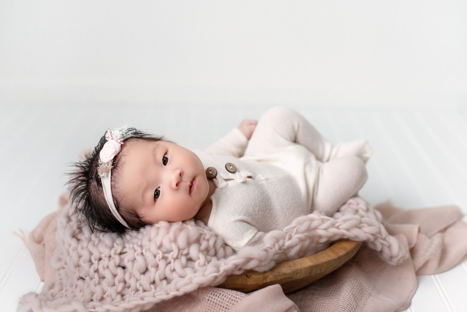 I primarily photograph newborns . In particular, I offer posed newborn sessions. It is definitely not an easy niche to be part of. There is so much involved in this niche, it requires a few years to get the posing correct, and more importantly, knowledge on how to pose the babies safely. I have taken many pauses in my business. Being a Military spouse. we move every few years. If you’ve ever had a business, you’ll know that it takes a while to establish a trust and reputation in the community, in order to gain clientele. Although this has definitely created some set backs to my business, it has also given me time to assess what direction I want to go with in my photography. I used to be all about the colors, and florals in my set up because that’s what is popular in the newborn photography industry. I also spent so much unnecessary money because I thought I needed ALL the props and gear I saw other photographers had in order to be successful. But taking a break has made me realize, that wasn’t my style at all and not the type of image that I wanted to produce. I realized that I prefer simple, neutral and monotone set-ups. Something that really highlights the baby. I didn’t need all the colors and flowers and props to take away from their perfect little features. I just needed a simple backdrop and matching wrap. My favorite is creating ‘white’ set ups. It is just so pure; perfect for the littles! When I ask my clients why they picked me to be their photographer, it makes me happy to know that the answer is exactly what I had hoped my brand would be recognized for; simple, classic, and timeless images.