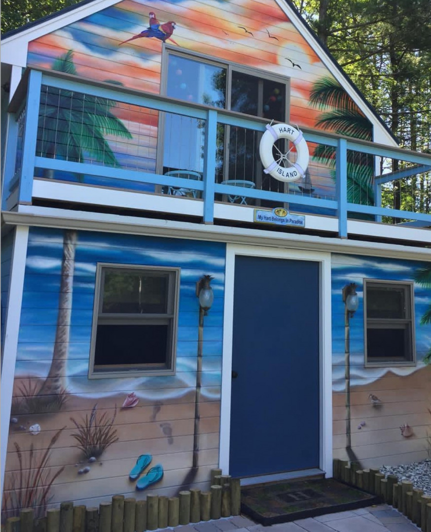 I bought a 8×16 shed from a neighbor and refinished the inside into a boutique.