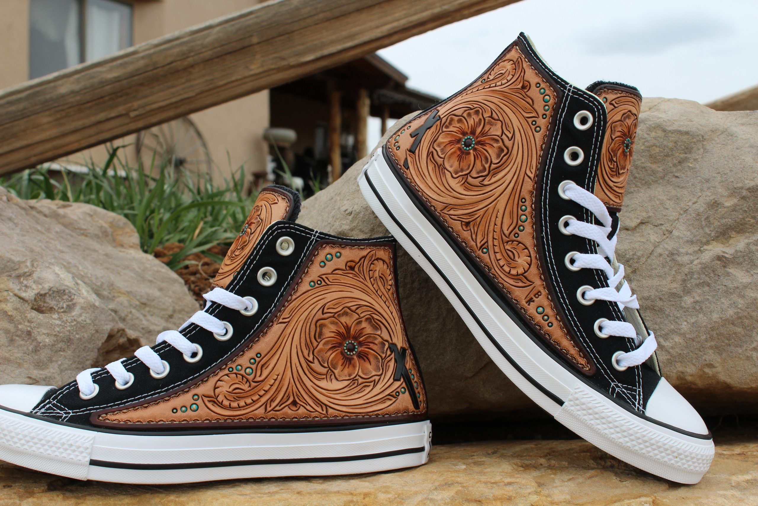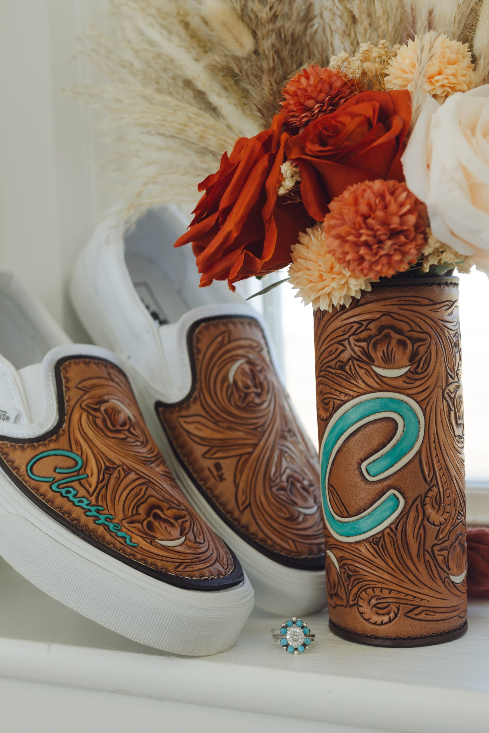 I am a small fish in a big pond when looking at the leather industry as a whole. It is important to me to build products that I enjoy creating and that other people can use for many years. It seems like every other season I am finding something new I love to create. I have been adding leather to shoes for about a year now and this has quickly become one of my favorite orders to receive. I also love creating sets for brides. Bouquet wraps, shoes, belts, cake toppers, and guest books make my heart so happy. Being asked to build a piece for someone’s big day means so much to me. Another aspect of my business that I really enjoy is going to trade shows. Although I love my custom orders and getting to bring others visions to life, having the creative freedom to build whatever I want to put in a booth for a show brings me so much joy. I feel like this has helped my art grow tremendously over the years.