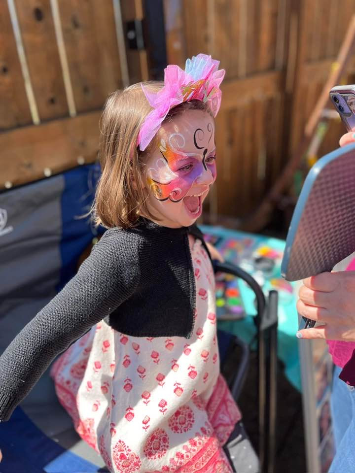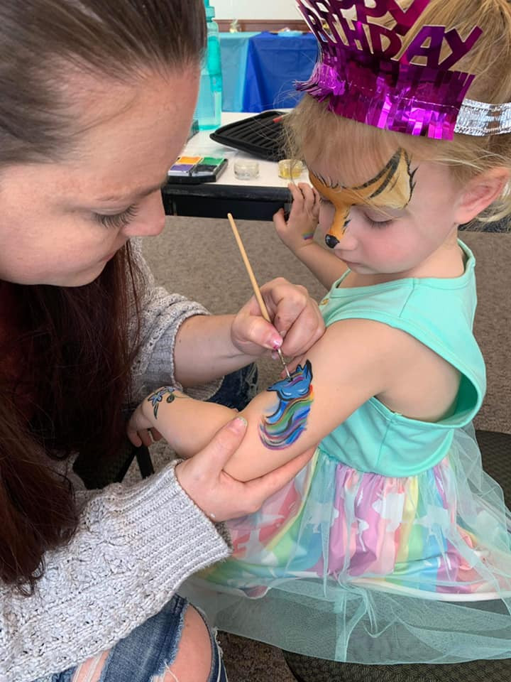 During one summer, a friend asked if I could face paint at her daughters birthday, even though I had no idea how. During that party is when I realized I had found another creative avenue where I could hang with kids, and make some art! Word spread over social media, and now face painting is one of my main jobs. I’ve also done a few murals along the way, and have fallen into teaching paint parties. All of these jobs are so incredible, it rarely makes “work” feel like work.