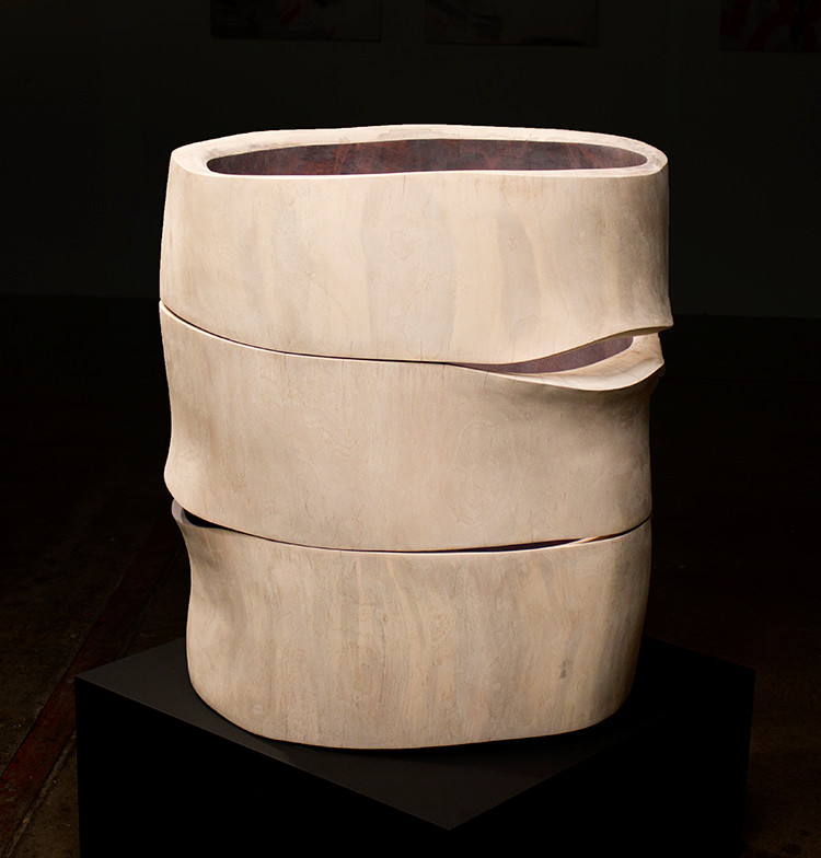 I recalled a time when I was working on a wood sculpture. It was a hollowed tree trunk that I was enjoying working with, sanding some smooth edges, but also deeply respecting the form as it had grown. A friend was passing through the studio and said something to the effect of, “What will it be?” and I took this as such a huge compliment. I’d already spent weeks working on this piece and it was nearly complete, but it maintained the essence of its original state. I try not to overwork my work. Some of the highest compliments I’ve received about my work are that a piece of pottery looks dug up or that a piece of wood still has yet to become something other than itself.