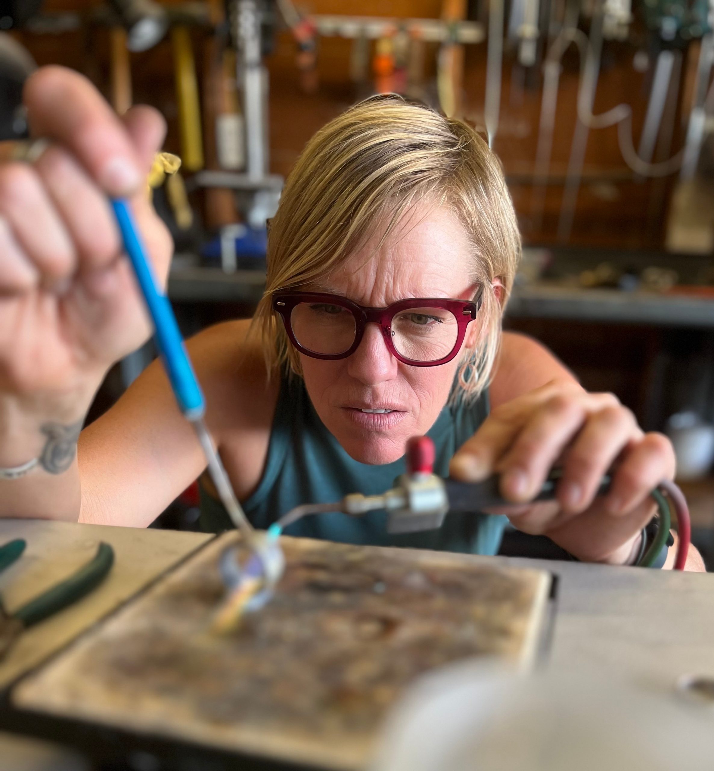 My studio became sacred ground; it was the place where I faced myself and decided I was willing to do what it would take to heal and change my life. My torch was not only working its alchemy on the metal, but on me. That space became my crucible. It was there, with fire in my hands, that I decided to get into recovery, which taught me how to trust, to move forward, to finally follow the path that had been calling me all along. Essentially, all the years off-course, overindulging in dangerous risk, are what got me here. Risk is what fuels growth and ultimately, what makes transformation possible.