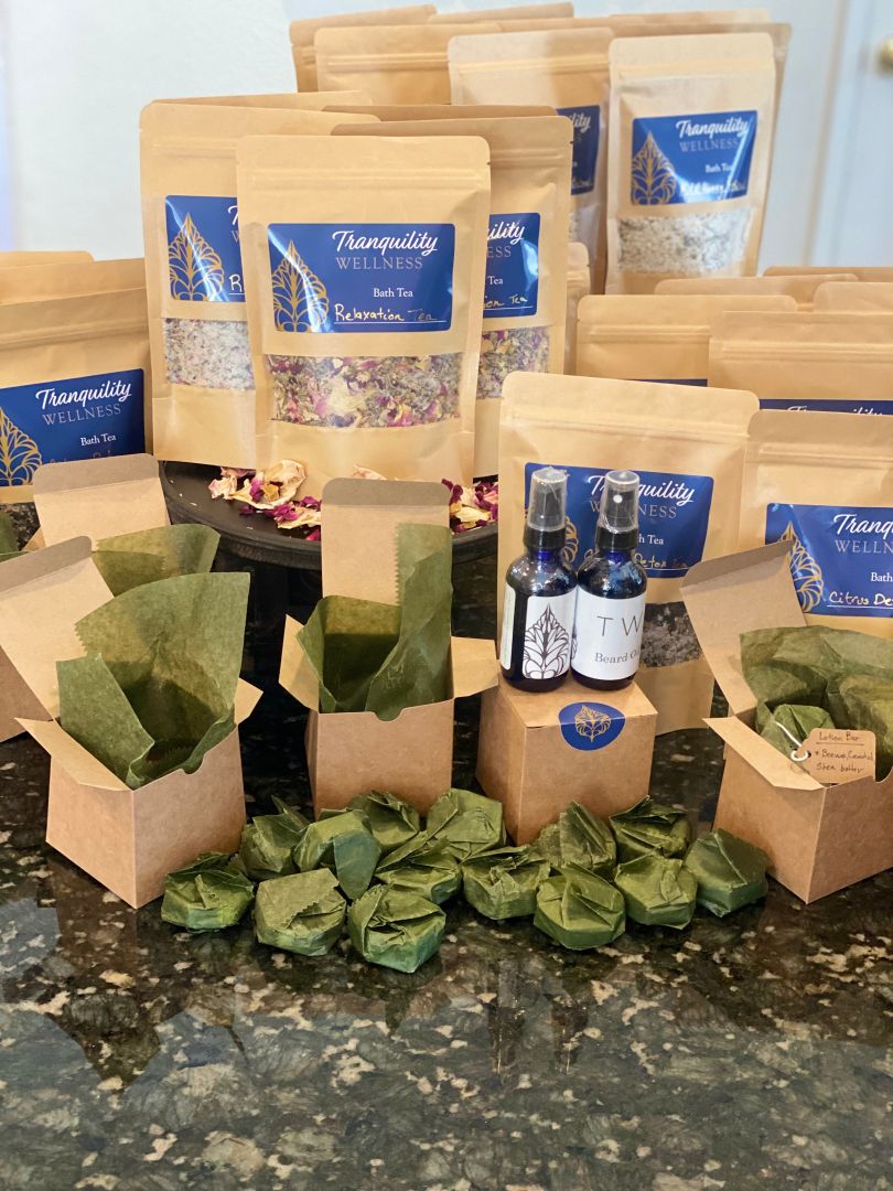 Working for high end luxury spas and day spas across the country made me realize just how sensitive my skin is. I really started reading every ingredient just trying to figure out which things were driving my skin mad. A few years ago my mother in law visited a cocoa farm in El Salvador. She brought me back a small lotion bar as a gift. I fell in love and before I ran out of it I started trying to figure out how to make it at home. I slowly started working on my formulation, making little lotion bars to give friends and family. Then the Covid pandemic hit. While quarantined at home, not doing any body work, my brain decided to focus on something positive. Thus my produce line was born. It’s still small but I love it. I make bath teas, shower shakers, lotion bars, scrub bars, soap, beard oil, mask sprays, linen sprays and more in my mind.