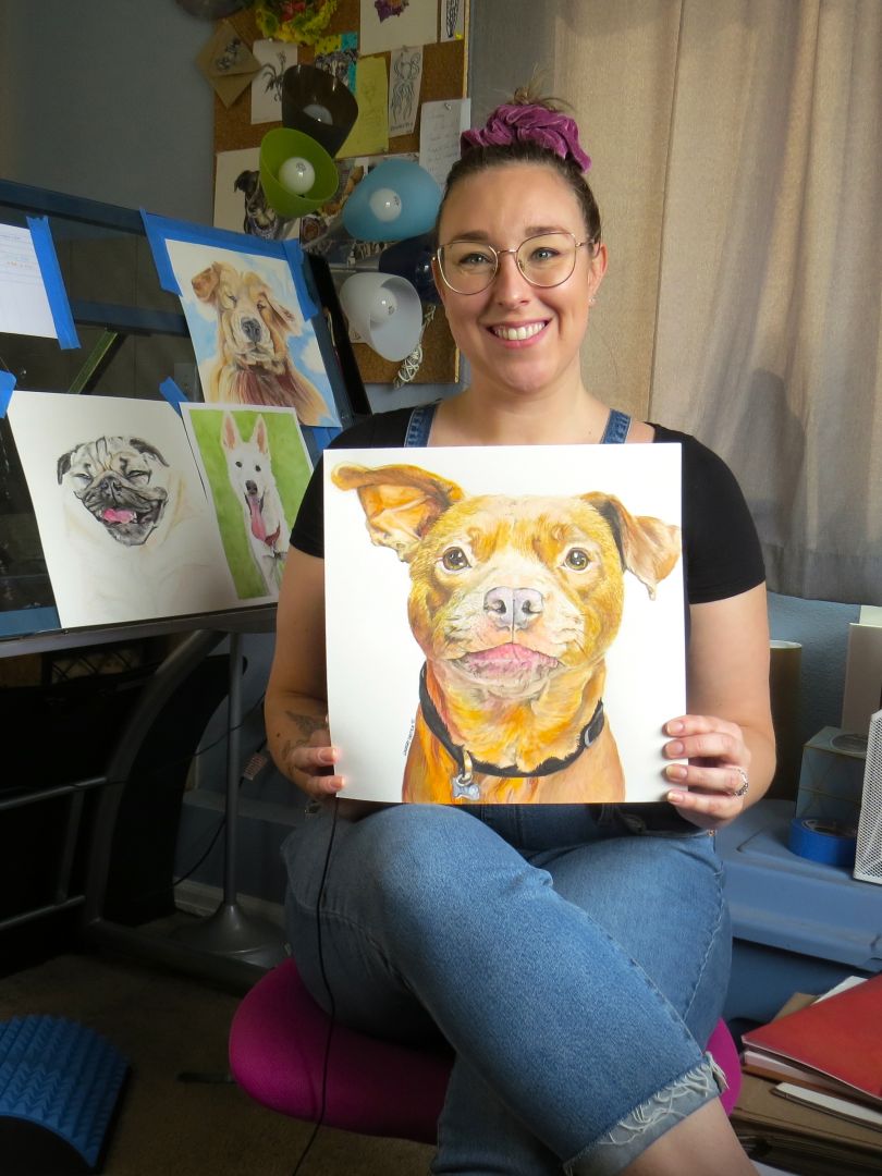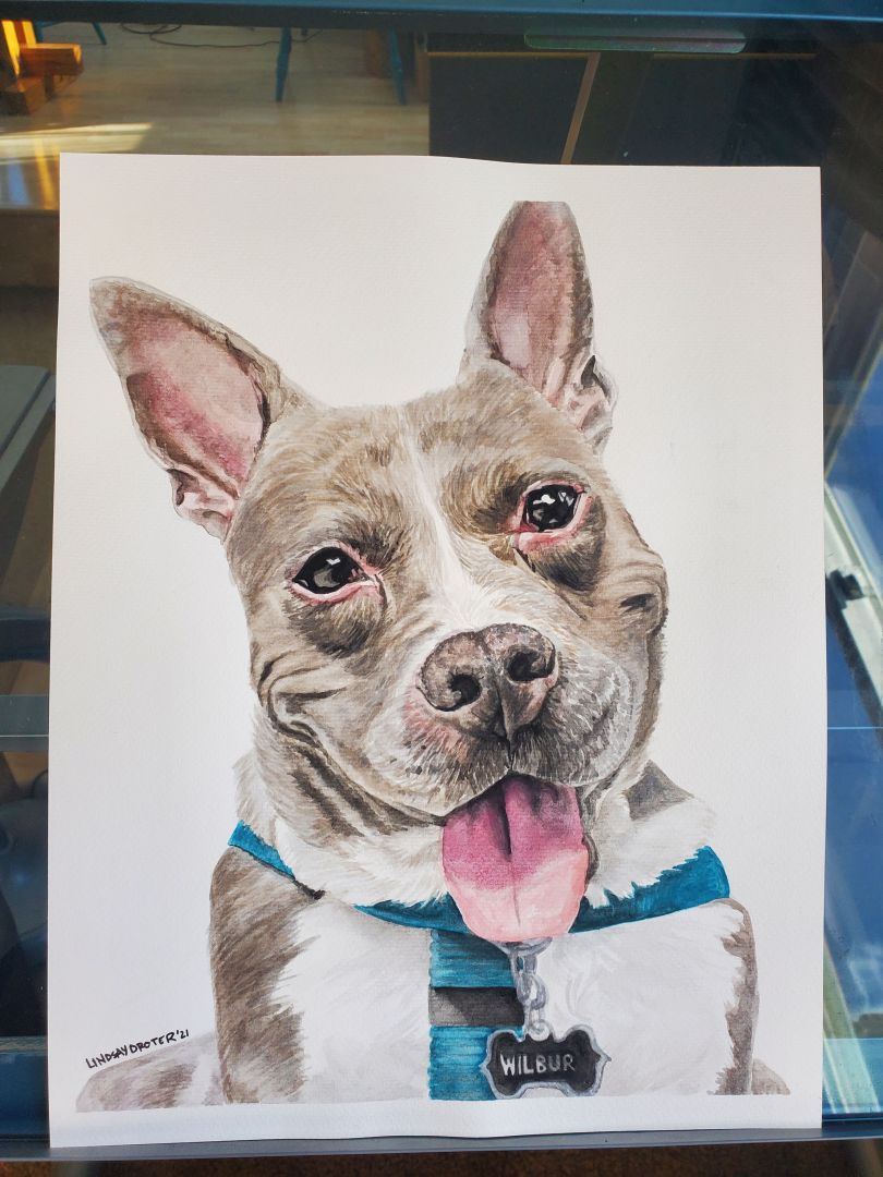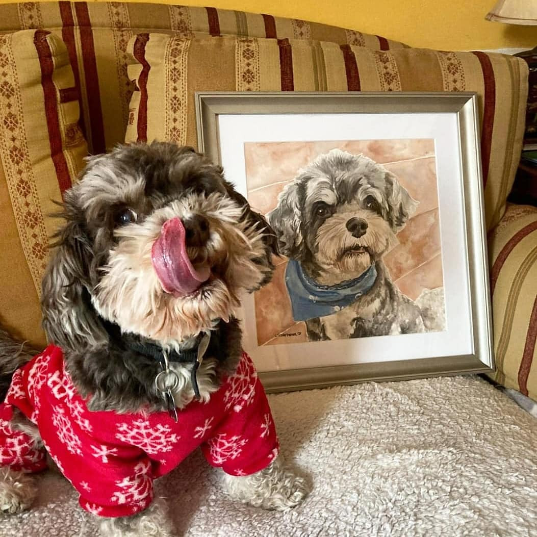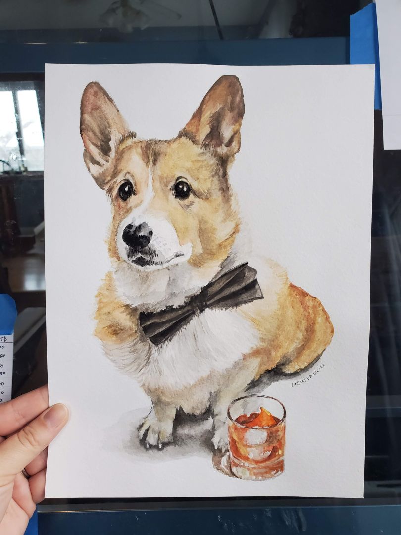 I’ve been doing art in some form, my whole life. And one of the best and hardest things is that, the more you do it, the better you get. So, even looking back at portraits from two years ago, I can’t help but cringe a little because I’ve improved since then! I want to go back and redo all of the paintings from 2020, but that’s just not possible. I have to remember, my clients still love them, so I can too. One of the things that I’m proudest of in my work, is being able to portray a subject’s personality and spirit. And that’s the feedback I get most often from clients, that I’ve, “really captured [their] dog’s character.” That has been a strength of mine since school- giving my work a sense of life, usually through whimsy or humor. Also, it’s a good reminder that this is one of the reasons why I’ve increased my prices!