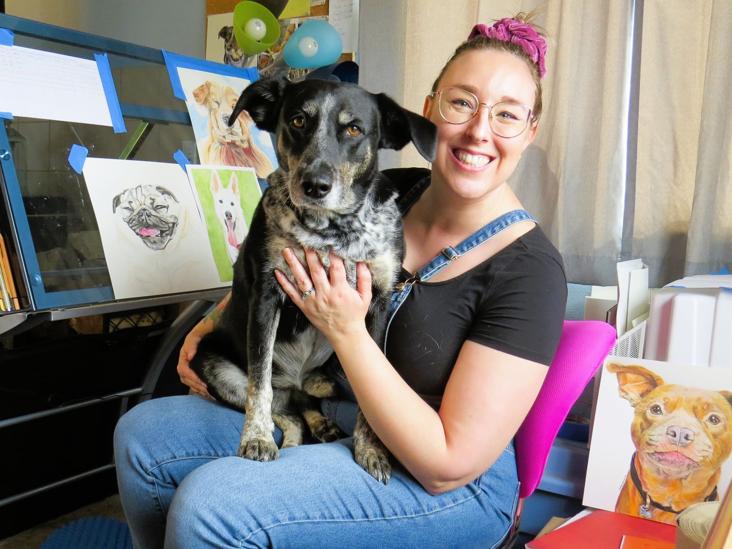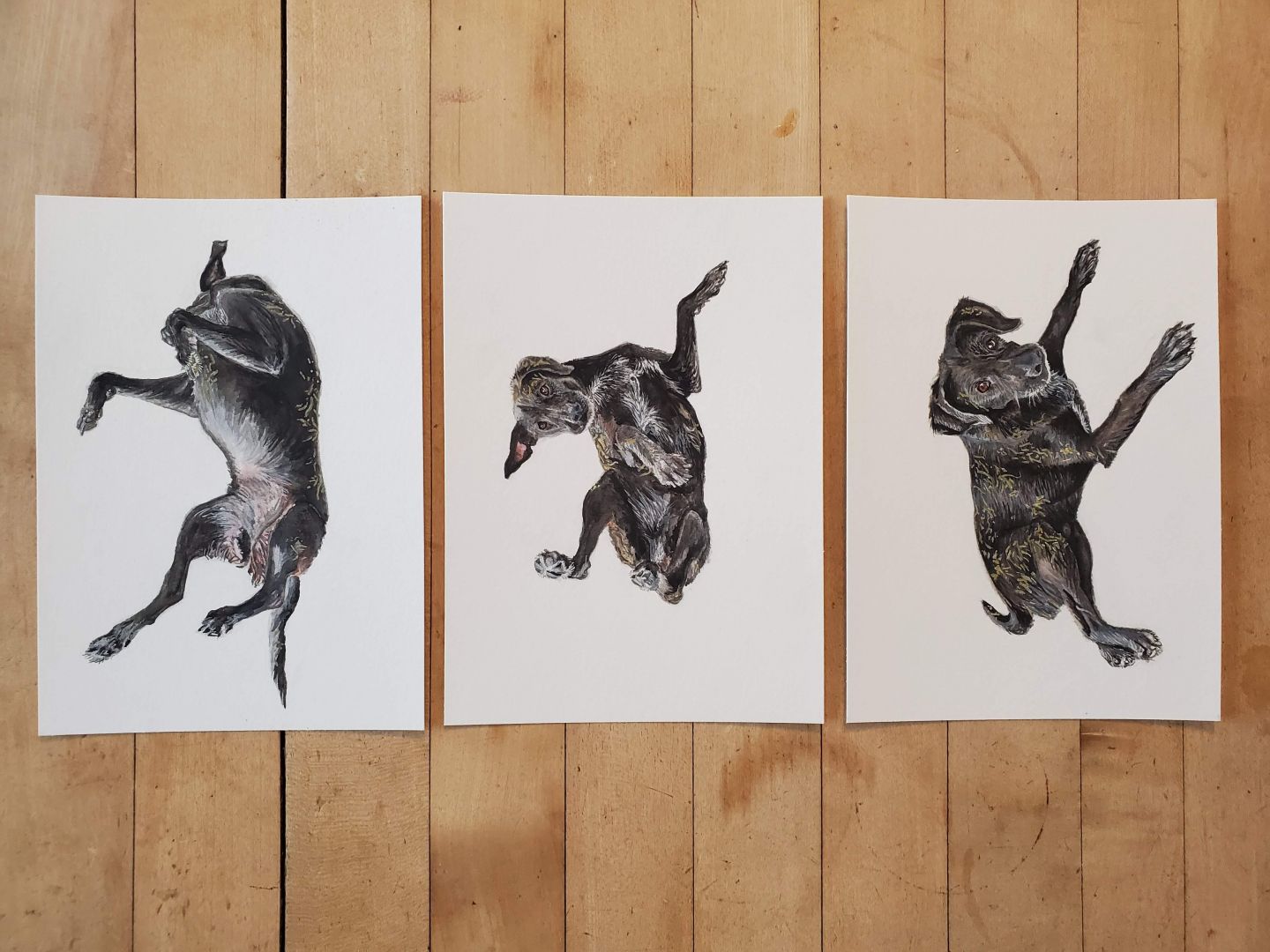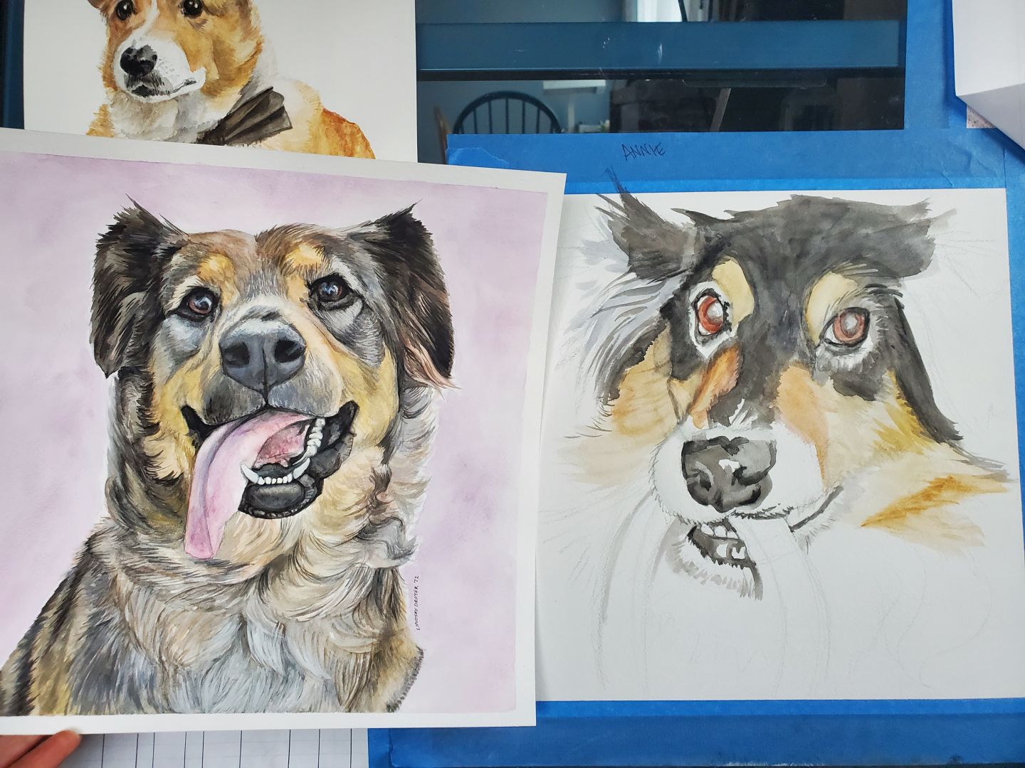I’ve been doing art in some form, my whole life. And one of the best and hardest things is that, the more you do it, the better you get. So, even looking back at portraits from two years ago, I can’t help but cringe a little because I’ve improved since then! I want to go back and redo all of the paintings from 2020, but that’s just not possible. I have to remember, my clients still love them, so I can too. One of the things that I’m proudest of in my work, is being able to portray a subject’s personality and spirit. And that’s the feedback I get most often from clients, that I’ve, “really captured [their] dog’s character.” That has been a strength of mine since school- giving my work a sense of life, usually through whimsy or humor. Also, it’s a good reminder that this is one of the reasons why I’ve increased my prices!