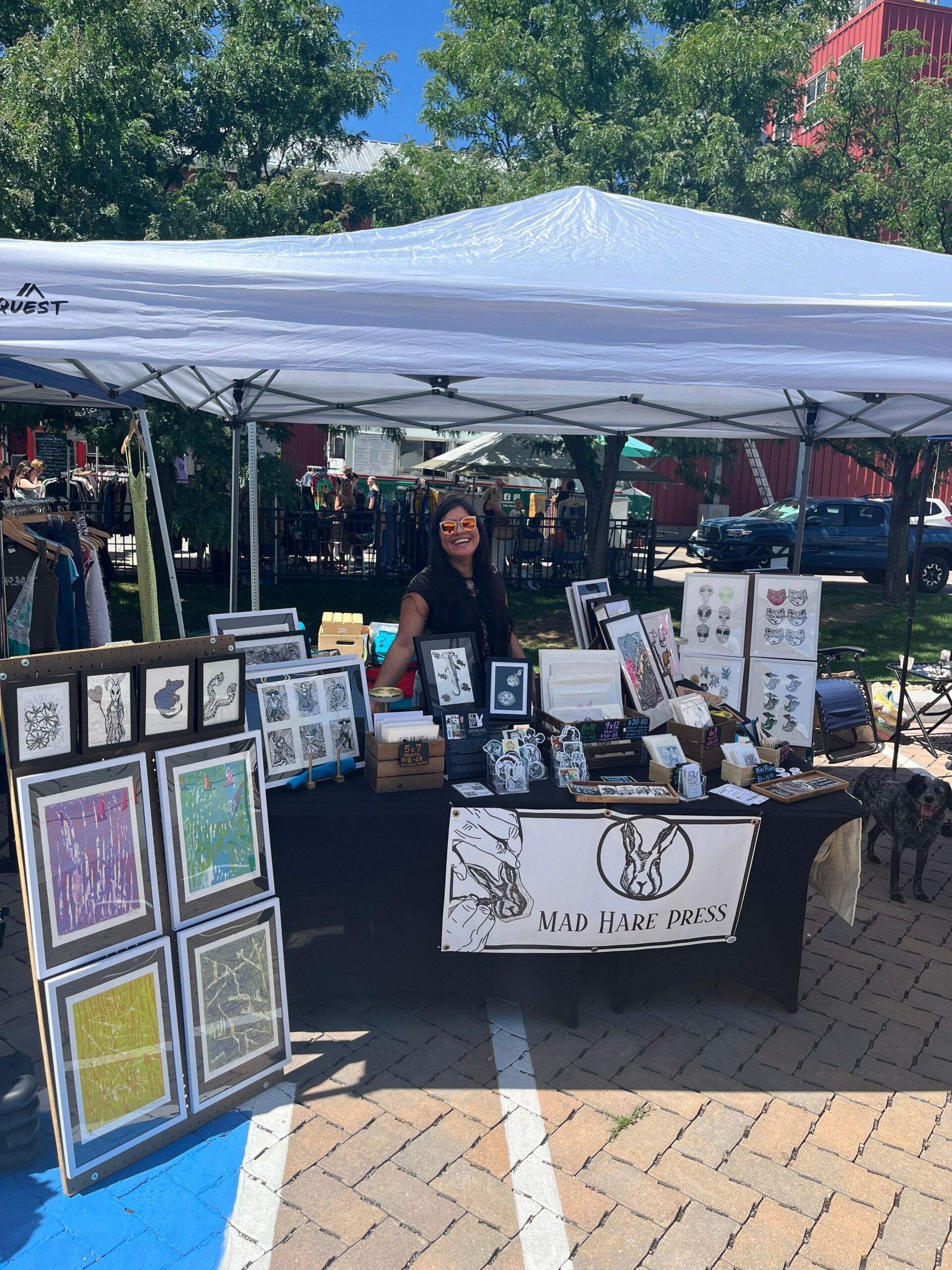 I wouldn’t be where I am today without the encouragement and support of so many people and organizations along the way. A huge part of my personal and professional success is thanks to my partner, Ben. He has been essential to the development of Mad Hare Press and my growth as an artist. Ben has stood by me through every challenge, particularly my health struggles, always offering both emotional and practical support. Whether it’s helping with market setup, driving me to events, or brainstorming ideas, his contributions have been invaluable. Ben truly understands the highs and lows of running a creative business, and I couldn’t do it without him. He’s not only my strongest advocate but also a constant source of motivation and stability, ensuring I can continue pursuing my passion, even in tough times. Not to mention he is the best dad to our pup RBG, aka RB.