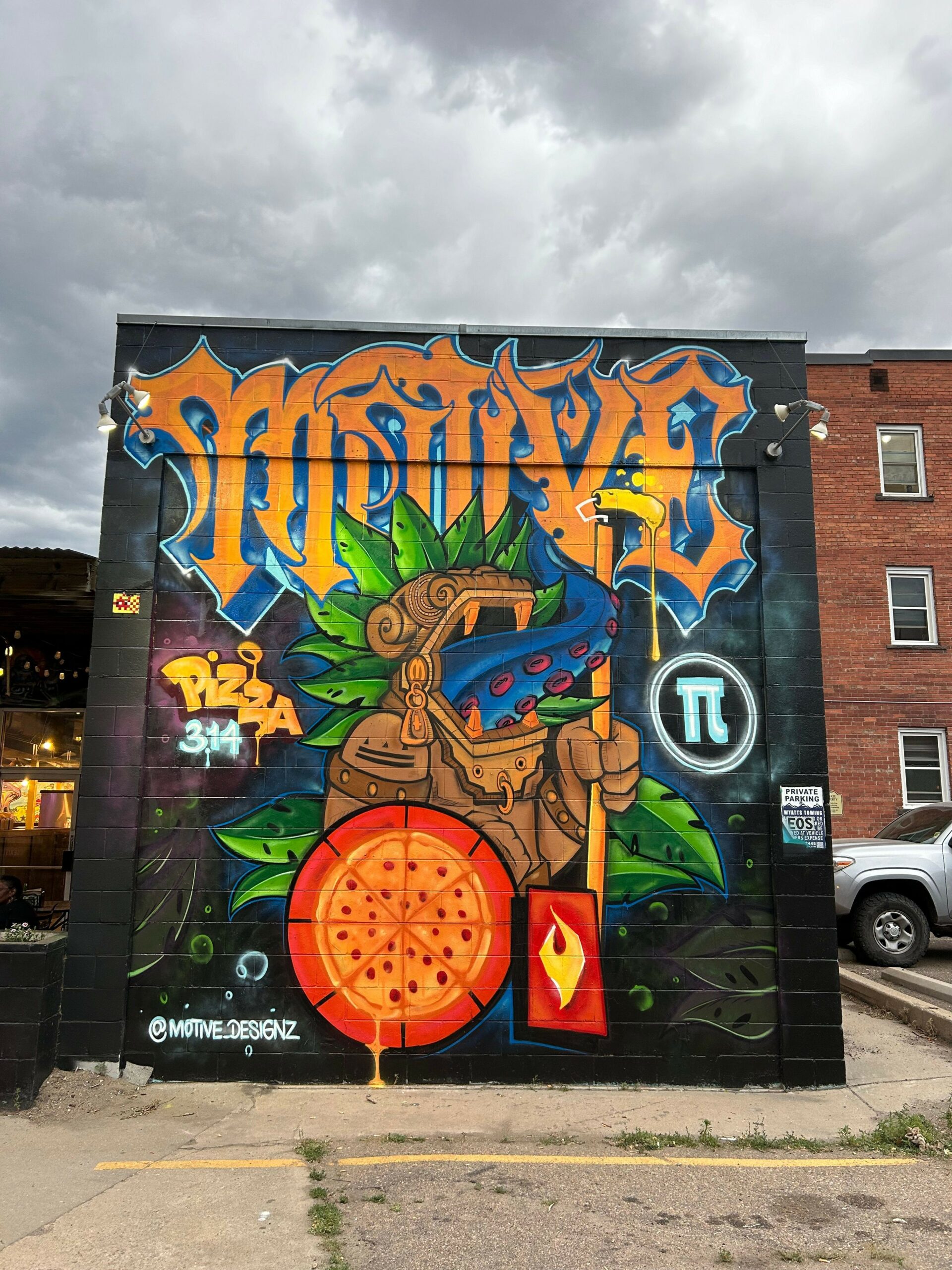 100% I would say the Rino District. There’s so much to see and explore. I’ve became friends with a lot of people down there just for the fact that I’ve painted there so much. Met business owners and people just walking around that spot me painting and want to come say hi. One of my favorite places to paint is pizza 3.14. Their pizza is amazing. Great art on the building and awesome pizza you can’t go wrong