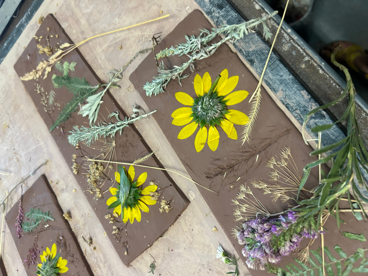 My work is deeply rooted in a connection to nature and a love for functional beauty. When I moved to Colorado six years ago with my partner, one of my biggest intentions was to return to making my own art. I had been working as a community center youth director in NY for years, and creating daily with kiddos but was itching to create for me again. In college, an art education major, I explored a little bit of everything, but I had never found the medium that truly felt like mine—until I started working with clay. A longtime best friend welcomed me into her studio in CO and taught me the basics of hand-building, and from there, something clicked. I began experimenting with pressing wildflowers, ferns, and leaves—gathered on hikes or walks around town—into the surface of slab-built pottery. It was something I had dreamed of for years, and it felt like coming home.