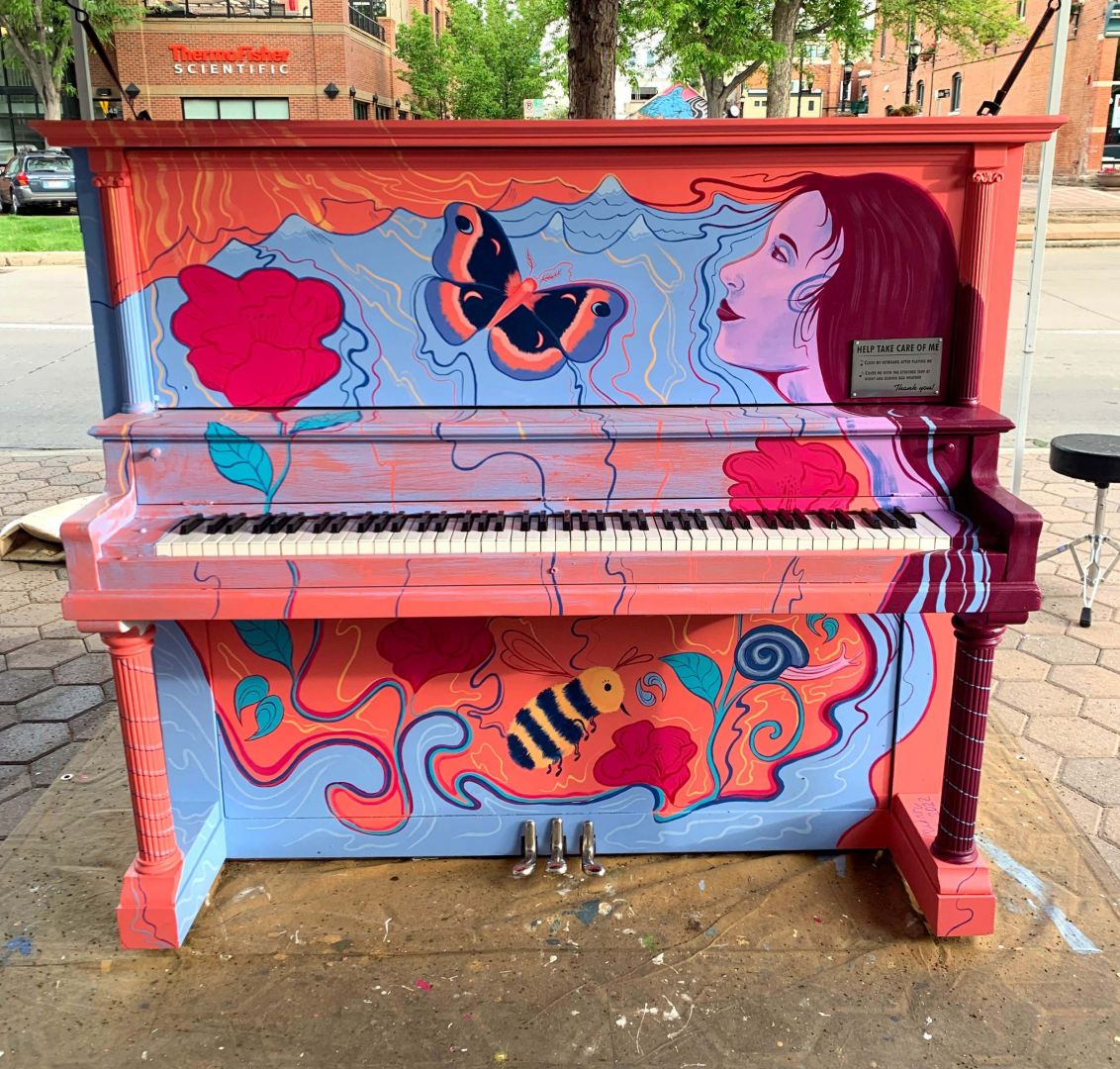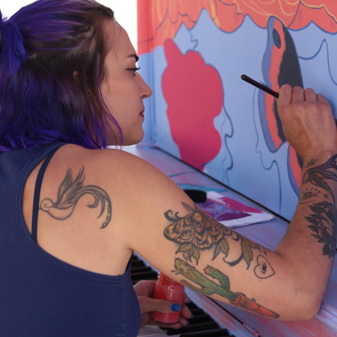 It wasn’t until I was pursuing an Equine Science degree at UW that I truly discovered my passion for drawing and painting. The time I spent drawing felt like getting lost in a new and beautiful world, and I knew I had to pursue this desire and love for creating. Art has always been very emotional for me, and I put a lot of emotion into every piece I create. Being shy a lot of my life, painting has been a way for me to have a clear voice and to put a piece of myself into the world. When I first decided to go to art school I didn’t have any clear career goals other than continuing to stay true to what I love and hoping the right path would find me. I was able to expand my knowledge, techniques, and style with the help of excellent professors and mentors over my years at school, and even more so after graduation. I had mostly been doing random commission work and still felt confused about what direction to take my art until I received my first mural job in the summer of 2021. This fell upon me right as I was getting ready to move back to Colorado, a mural for Three Taverns Brewery at World of Beer in Savannah. I loved being able to bring a small idea to such a big scale, and enjoyed the energy of painting in a public space. Public art like murals that anyone can enjoy and be impacted by really appeals to me. Since then I have painted many other murals, and I am always searching for more opportunities. My artistic style is dreamy and whimsical, and I always put my own twist on whatever I paint with lots of wavy shapes and lines and colors that bring it all to life. One of my biggest struggles with starting my business has been the fear of rejection with new clients and opportunities. The more I work to build my business, the more I am learning to put myself out there over and over again to find the right projects, and to not let the “no’s” discourage me.