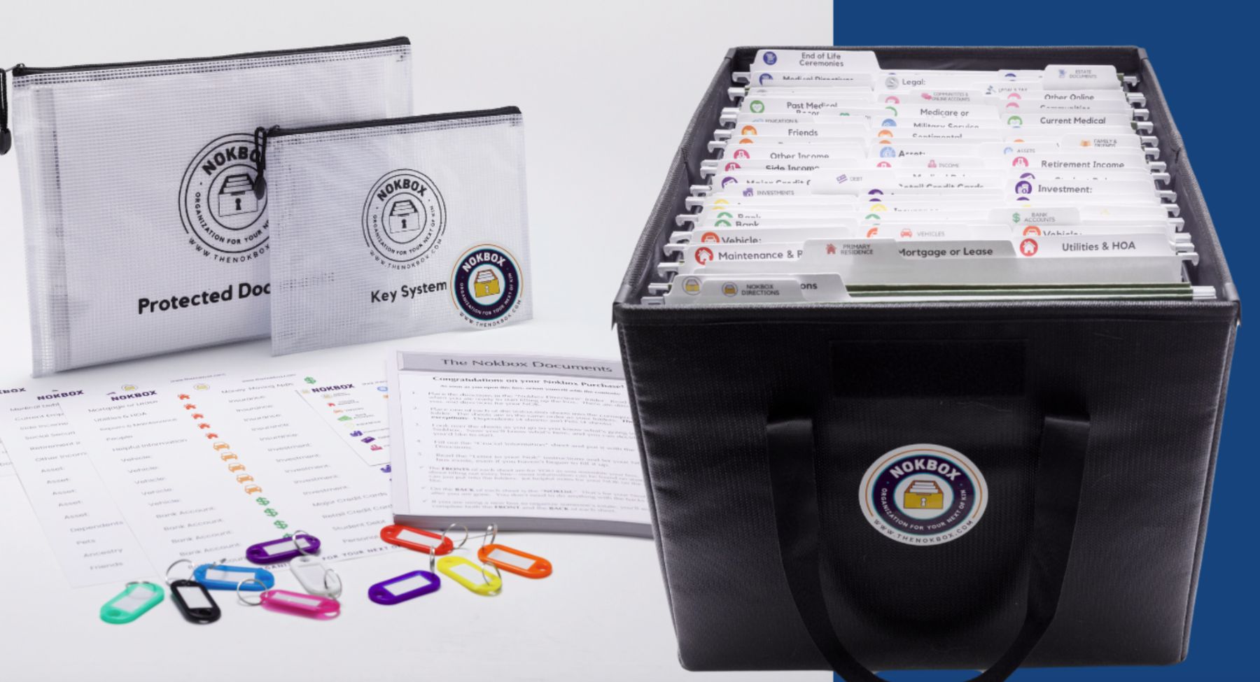 The Nokbox solves a real problem that many find difficult to solve on their own, and especially during an emotional time. We didn’t always need a full “kit” to manage our lives, but with lots of online accounts, papers to manage, and busy lives to run, it’s important these days to have a roadmap or an “index” to your life and home. It’s helpful for you now, and your next of kin later. After experiencing a family loss, I saw firsthand how chaotic and overwhelming it can be to manage a loved one’s affairs. I looked at my own life and realized “who could run this show without me?” I realized it wasn’t just me who needed a tool to organize: it was almost all of us.