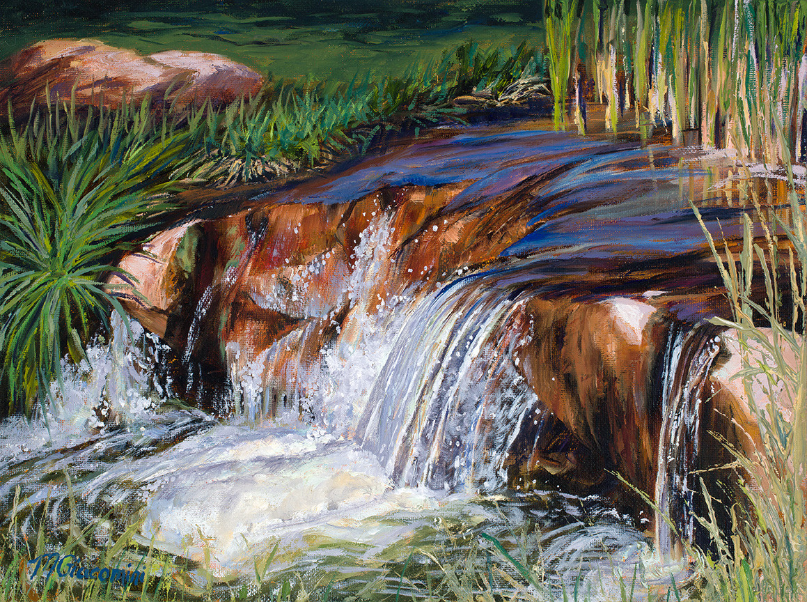 I am dedicated to painting ‘peaceful places’. I love to recreate places, things and people I’ve been inspired by. Lately I have been adding more figures in my landscapes which has been a goal for years. I like to learn styles, techniques and pallets used by other artists. My constant experimenting with limited pallets has taught me so much about mixing. I want to share my vision, my peace with others.