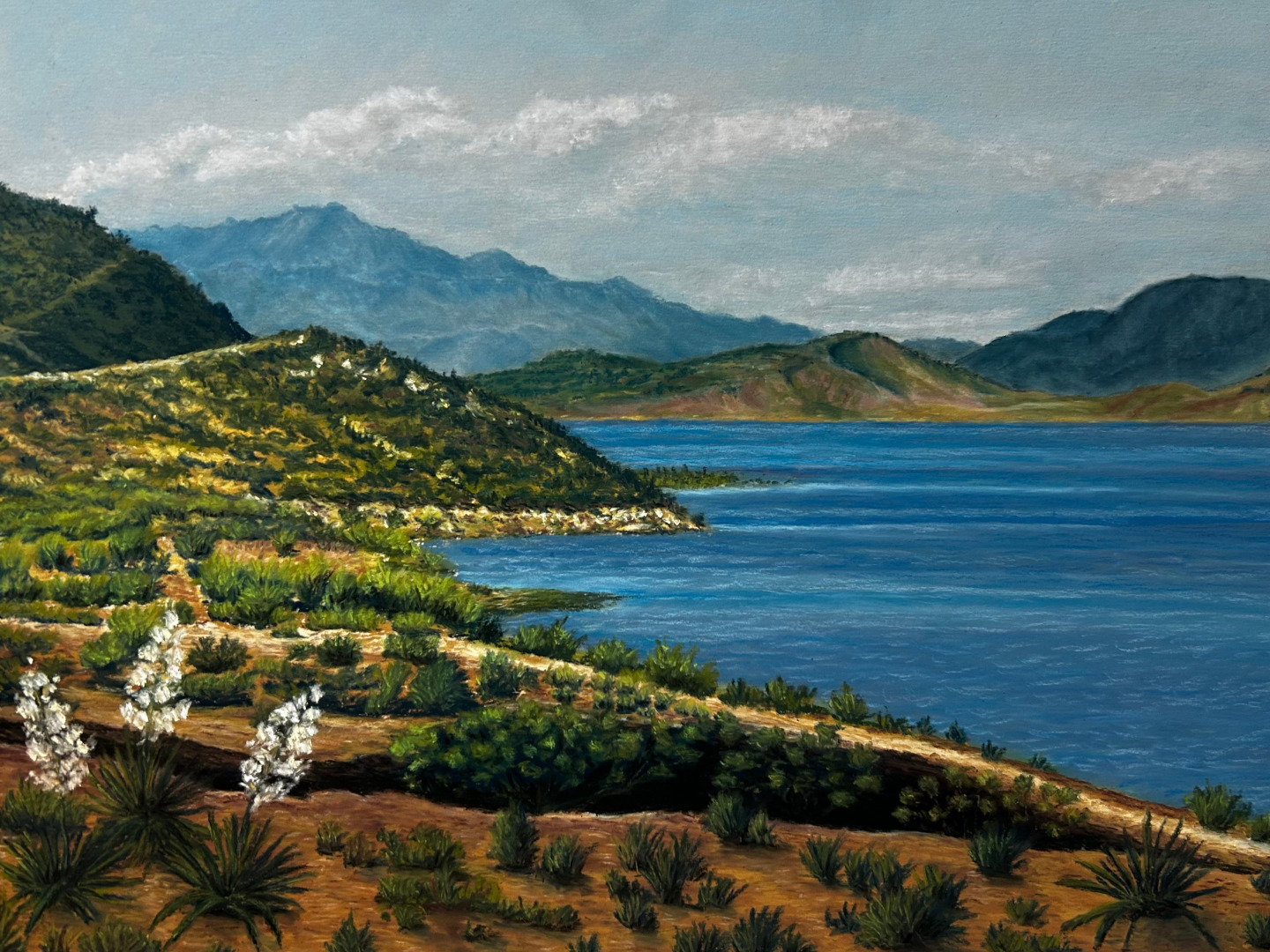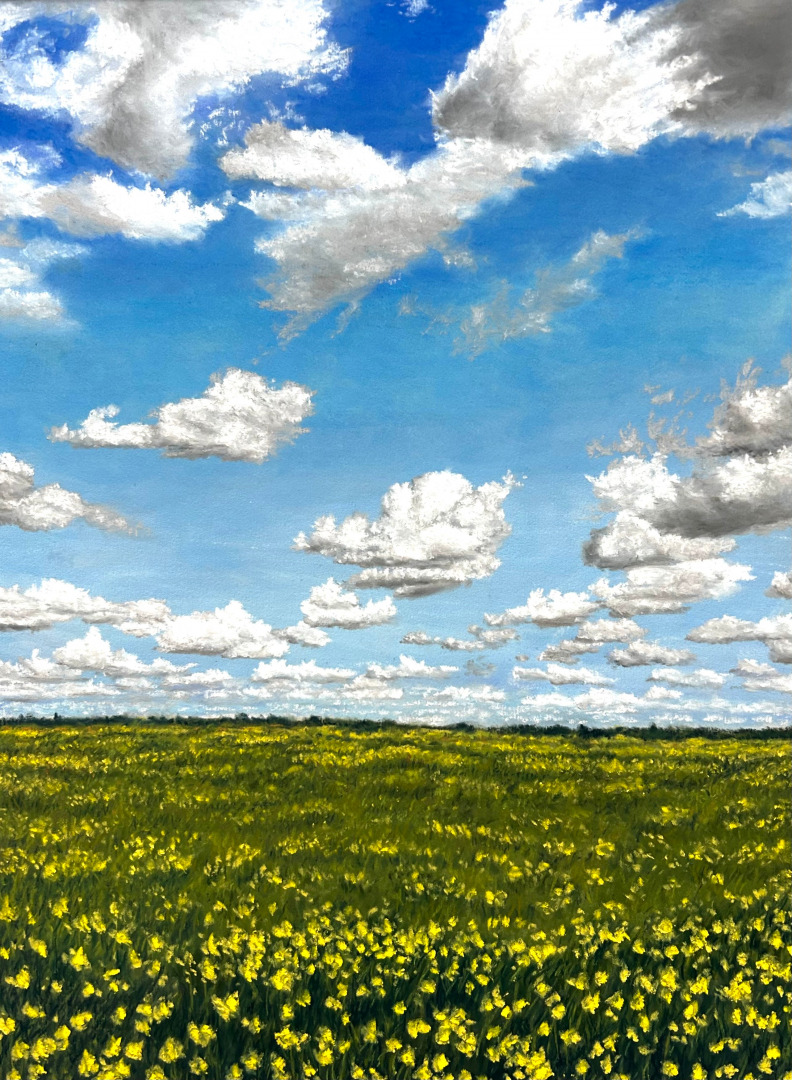 I’m most proud of creating artwork that resonates with people—whether it’s a quiet pastel landscape or a bold acrylic sky—and knowing my work can bring a sense of stillness or joy into someone’s life.