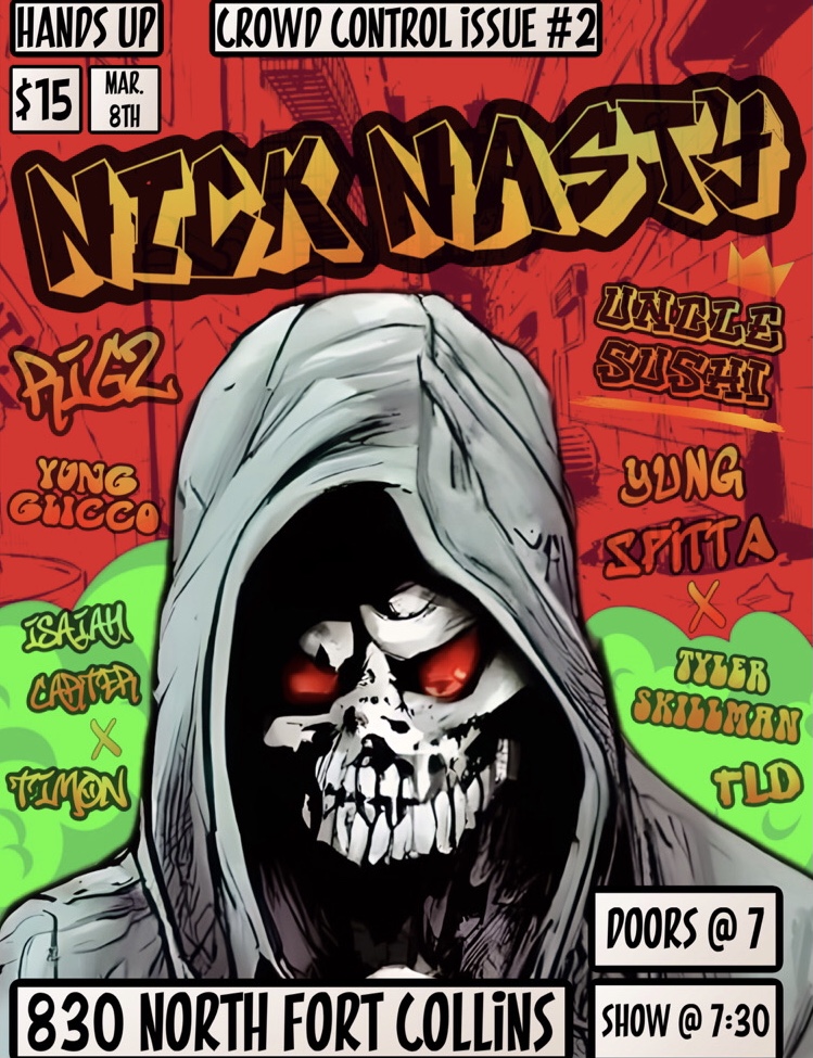 I’ve been rapping for a lil over 7 years going on 8 years now!! I feel I bring a very cool sound with my flows and the way I ride the beat! I’ve been performing for the last 2-3 years and have opened for some big names such as token, Afro man, Chris webby, king iso, doobie, caskey, krizz kaliko, and many more! So that’s a huge accomplishment!! I have also had 2 headlines my self at 830 north chippers lane! And 1 headline at the atrium in down town fortcollins! Anyone that has been to one of my shows can tell you I def have fun with what I do!