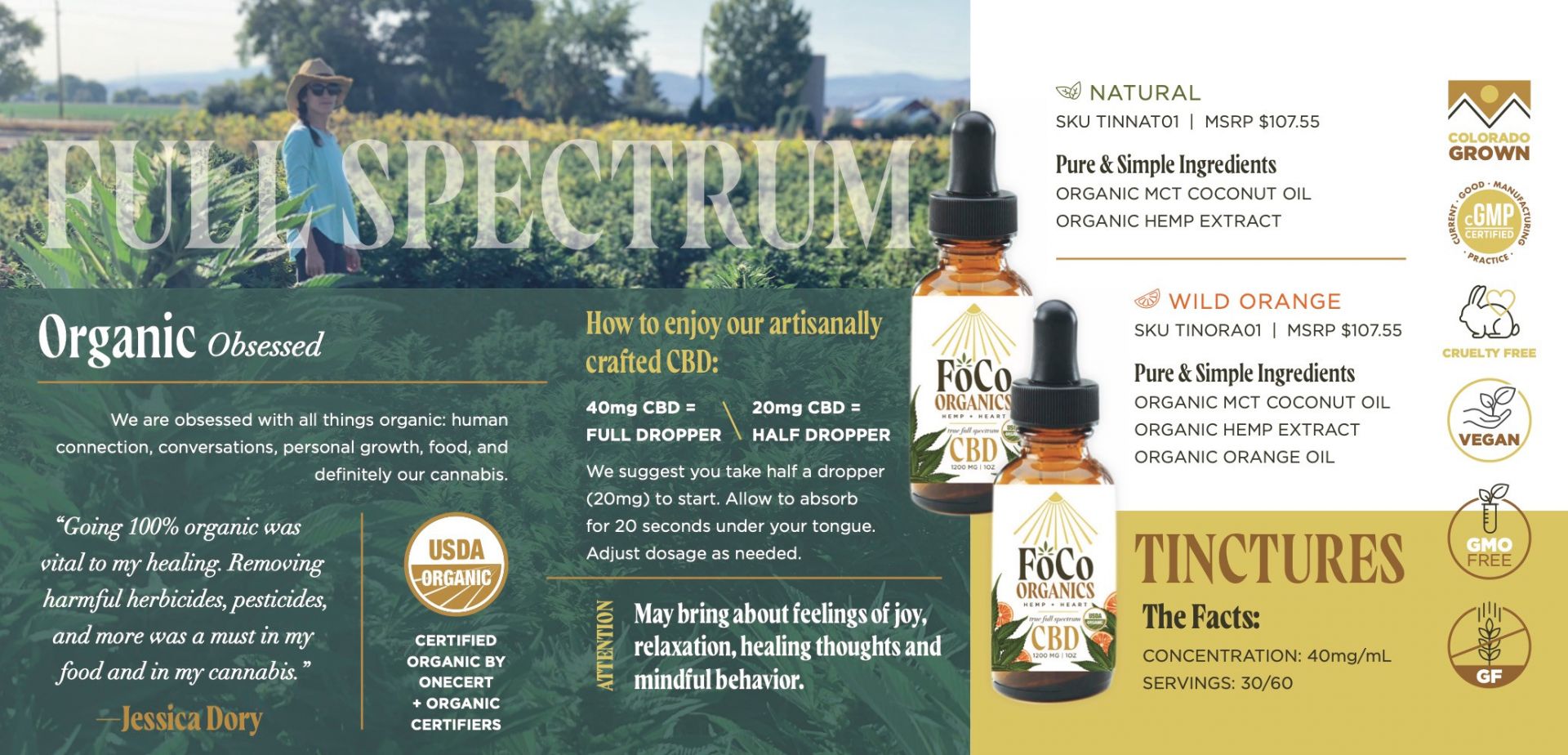 As a physician, I have seen patients adopting CBD tinctures and products to use for a variety of ailments and as a supplement for inflammatory processes and sleep/anxiety. The stigma is changing rapidly in medicine and many of us providers are recommending that patients try CBD. At the same time, I noticed that the market is flooded with poor options: Not Organic, poorly processed or researched, poor genetic strains, non-full spectrum, shoddy practices etc. Patients need a high-end physician-backed product that they can trust and afford and that is USDA Organic and best in class. When I saw the hemp the Dory Family Farm was lovingly producing, I knew that people could benefit strongly from a superior supplement and line of products that I could get behind and use for myself, my family and my patients. It was a no=brainer to come into a crowded market with the best product and team out there. CBD can really help a lot of people, and the products for sale on FoCoOrganics.com are the absolute best way for people to buy trusted, top of the line CBD products for themselves and their loved ones.