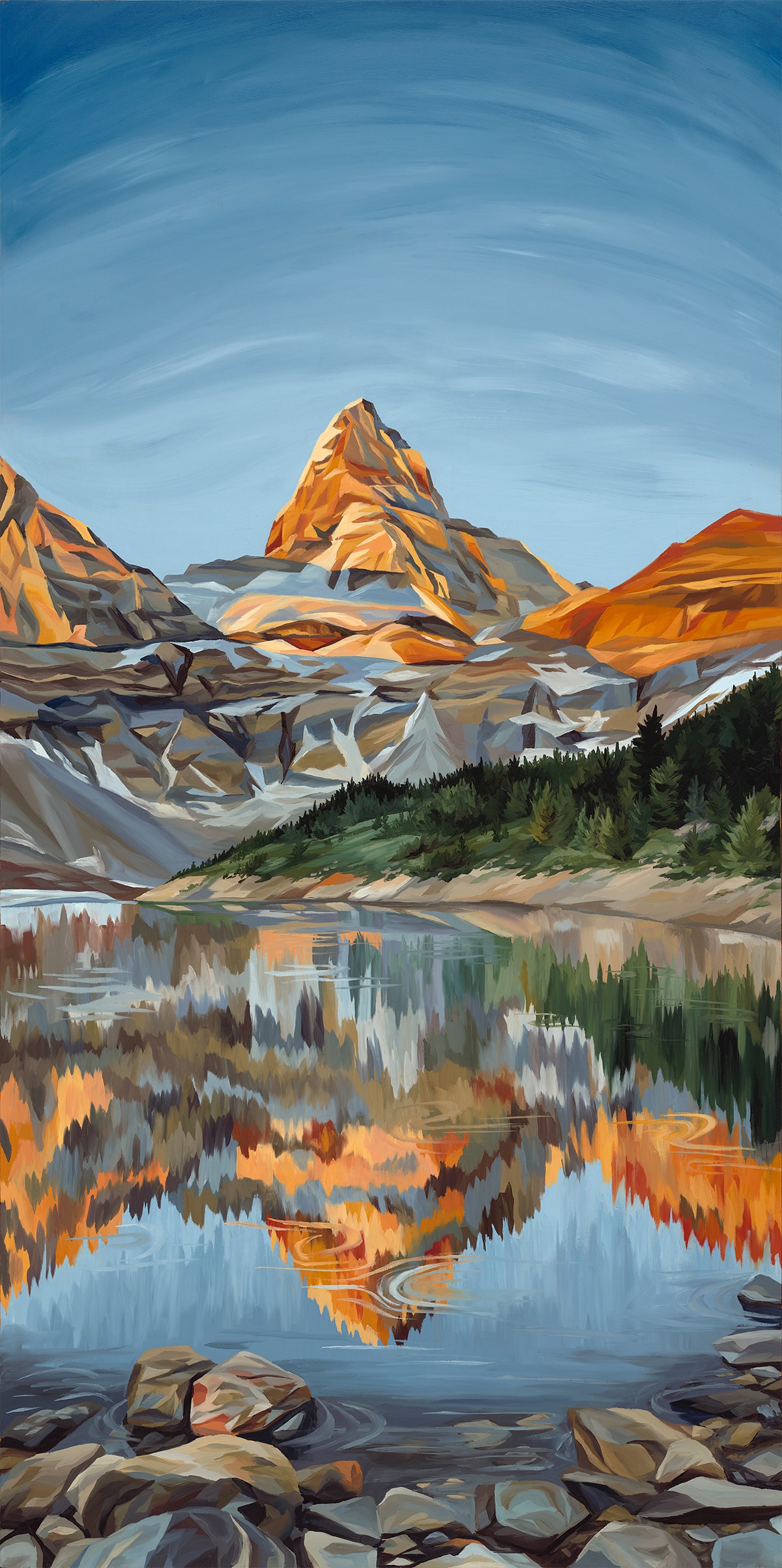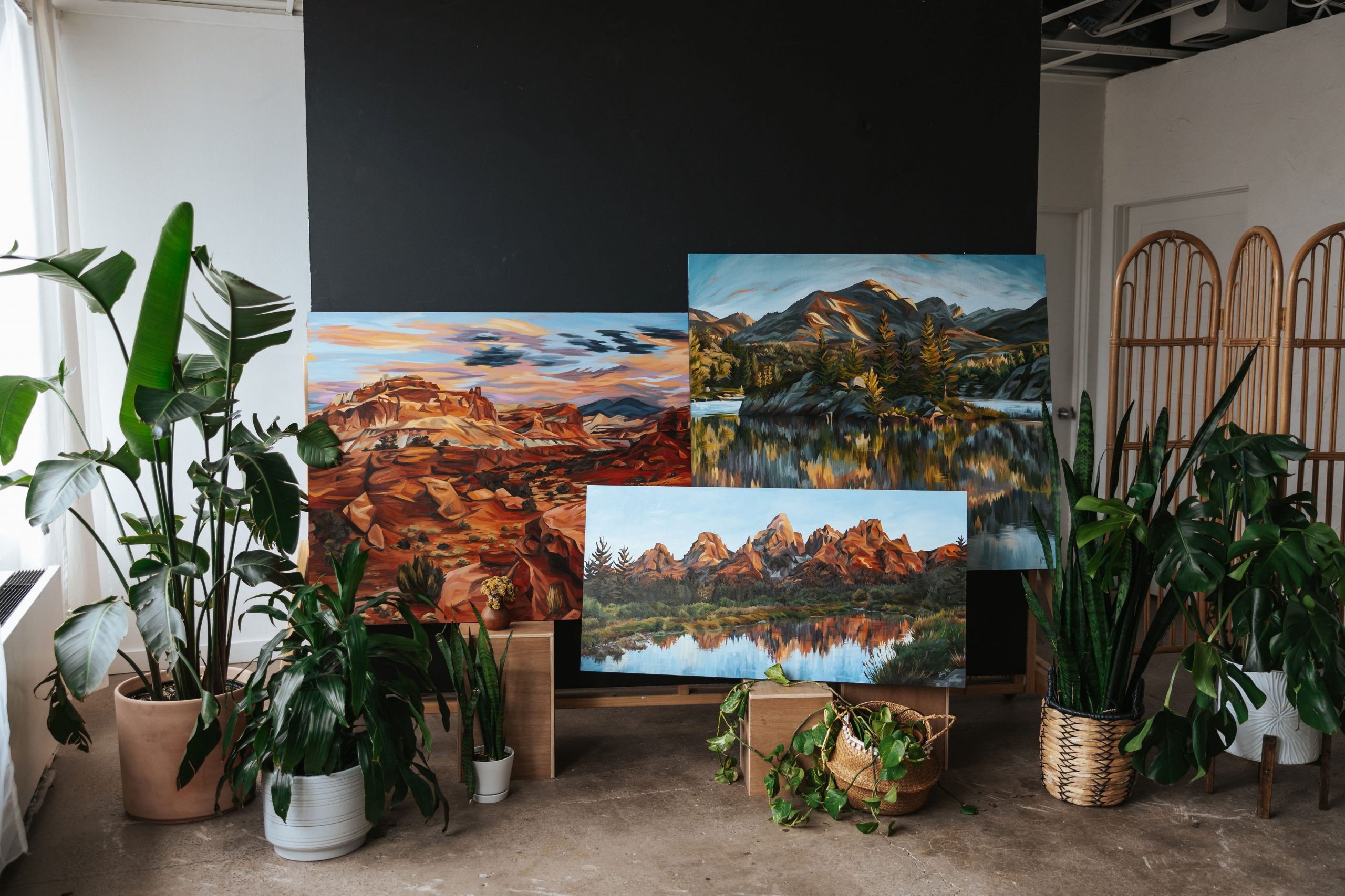 My work draws from my passion for outdoor adventure and exploration, and the conservation of these precious spaces. Painting these landscapes transports me back, and renews my fervor for their protection. I aim to create anchor pieces for exhilaration, centering, and wonder when physically being in the expanse of nature is not possible. I use bold brush strokes and vibrant colors to better capture how it feels to be present in these spaces, beyond just how they appear. Playing with dramatic light and vivid colors helps me create a sense of wonder in my work. Color is such a transportational tool. I mix and use highly specific hues that bring the viewer mentally and emotionally to the location, forming an immersive experience. The bold brush strokes create movement and draw the viewer into the spaces. Through sharing my art, I aim to ignite a passion for nature and its conservation in others. Protecting these spaces is vital to the wellbeing of this planet we call home, that nurtures and provides for us and all living beings. Art is a catalyst for social change and my vision for my art is to move people to participate in protecting our planet.