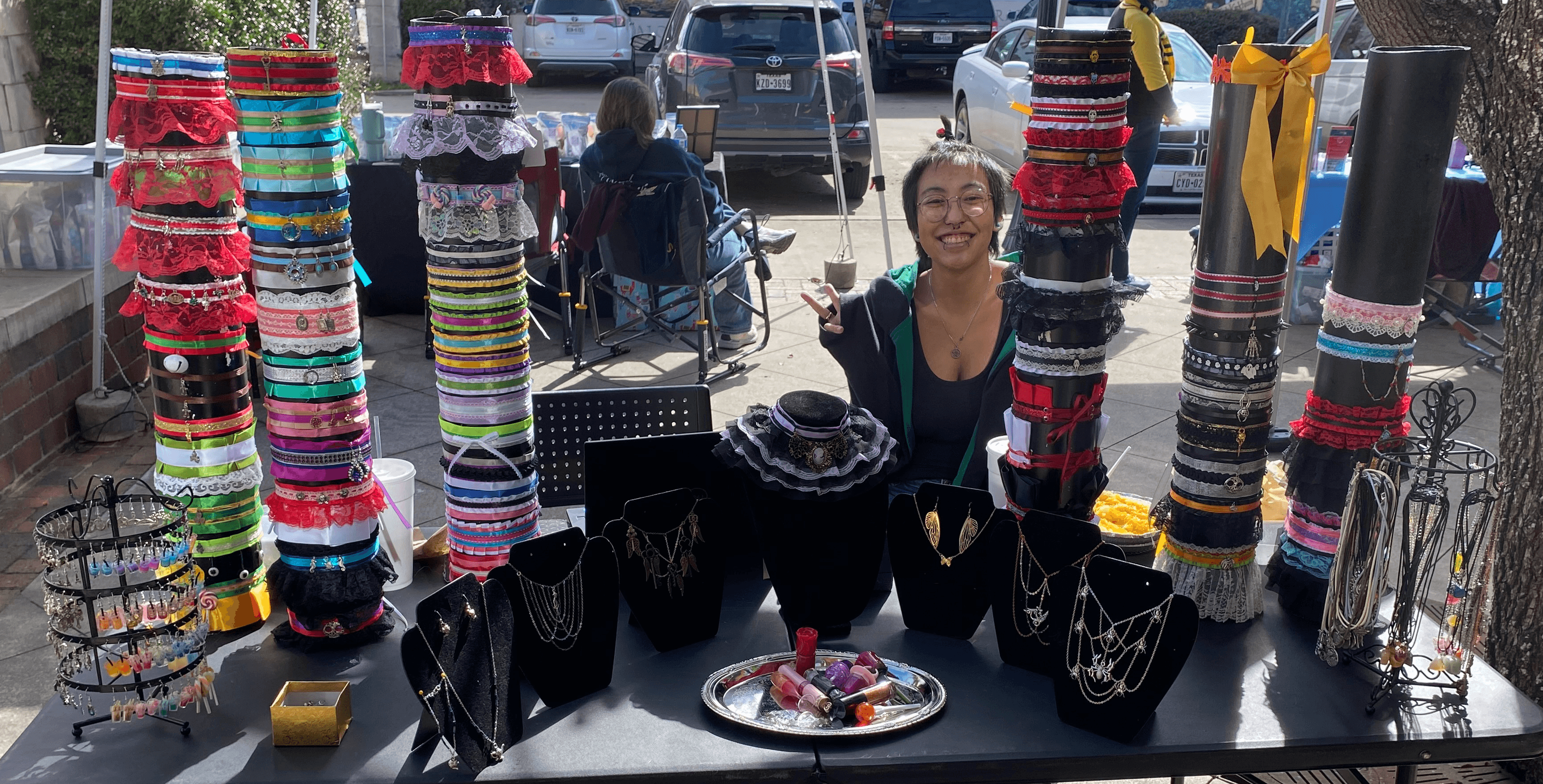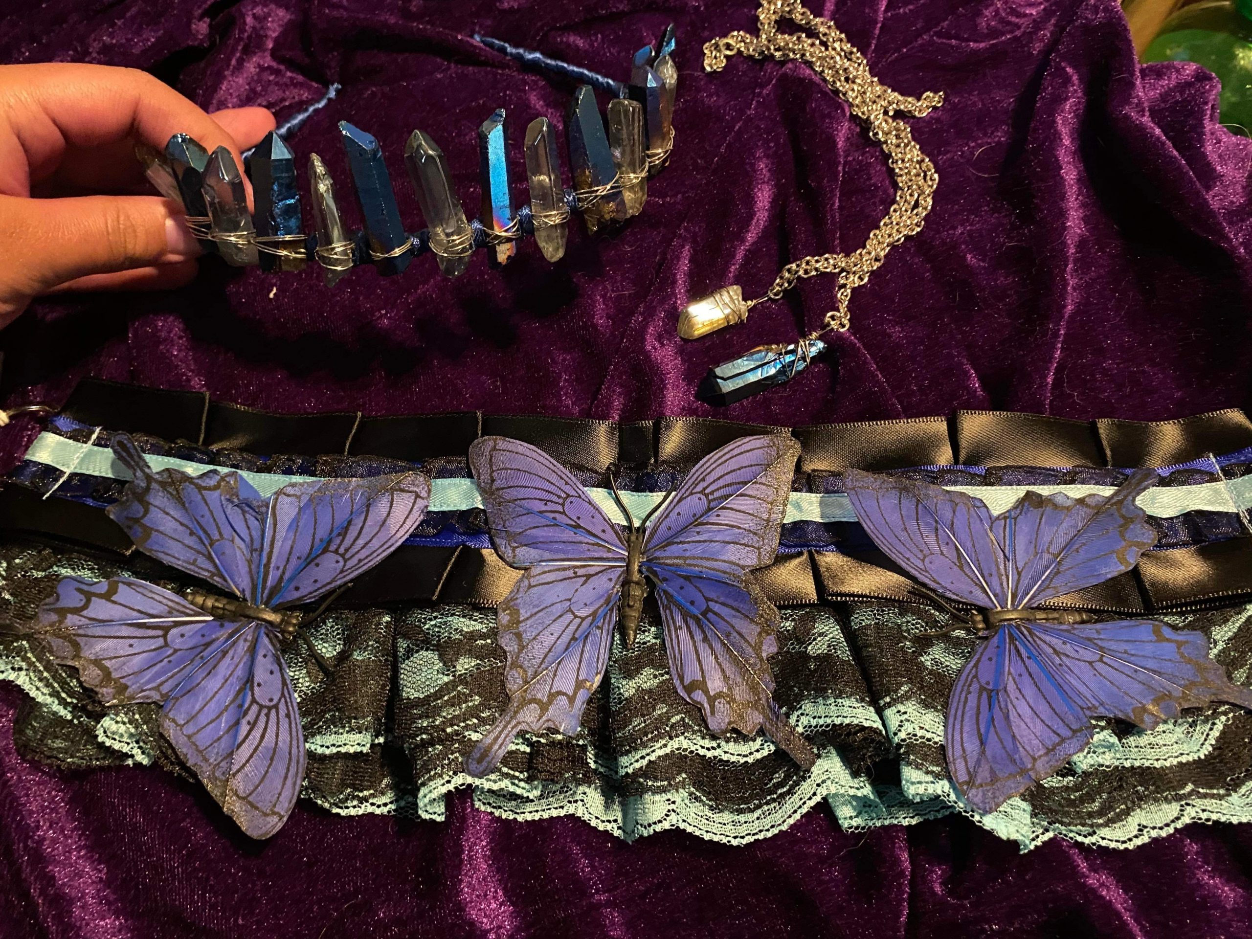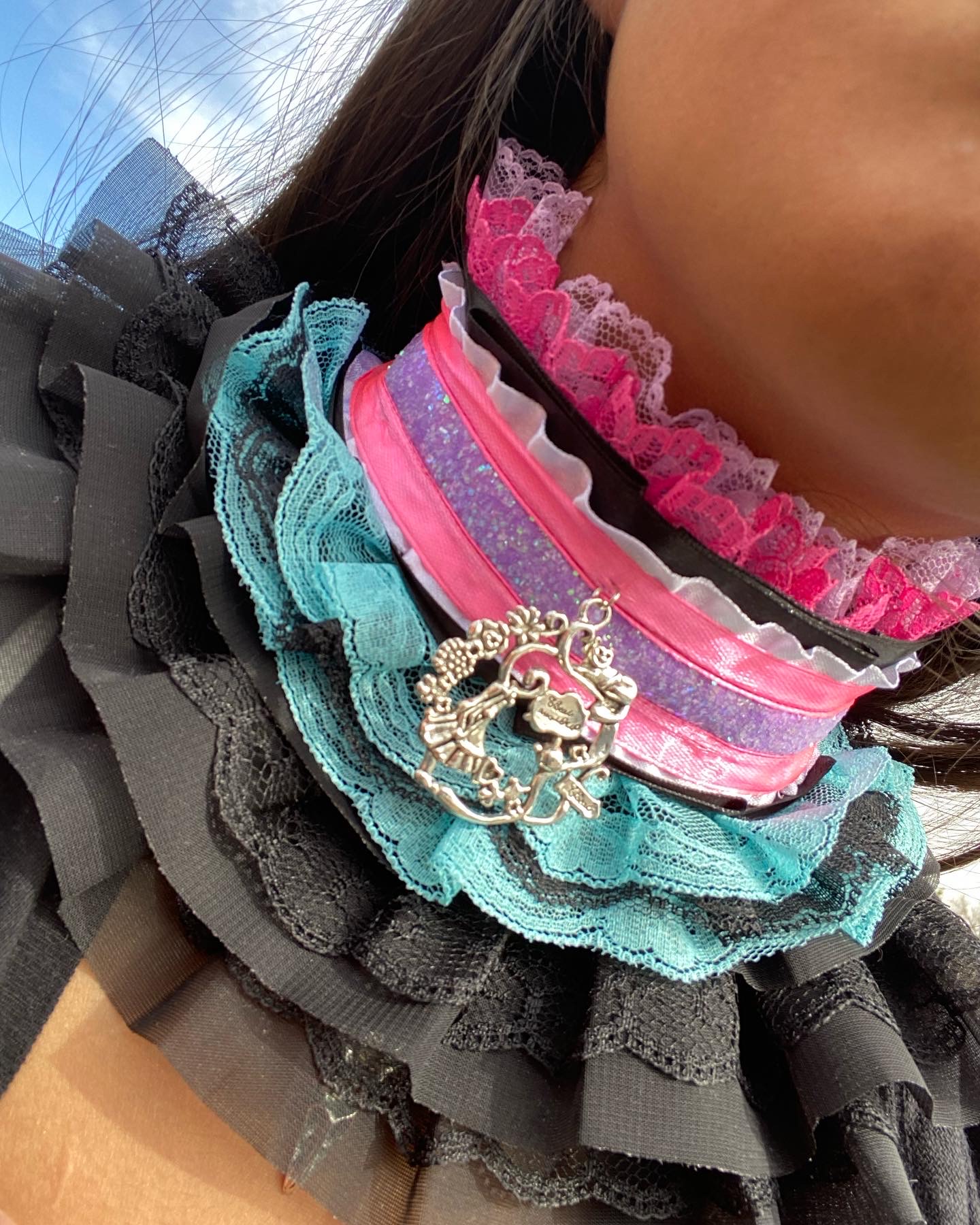 My form of art is in my sewing, it could be anything from clothing, to blankets, to my chokers. I put a lot of love into what I do, my inspiration for starting actually came from a Barbie movie, specifically Barbie and a fashion fairytale. When I first saw that movie at the age of 7 that’s when I decided I was going to be a fashion designer. That feeling has never gone away since, the creativity I felt, that passion to pick up even a needle and thread and to start creating clothes and bags just has stuck with me. When I turned 13 I got my first choker and was obsessed with them. A few years later when i was 16 I came across another artist who made chokers from ribbons, lace and other materials and it instantly clicked something inside me that I also could make chokers from ribbons, i immediately begged my mom to take me to Michael’s or Joanns so I could get some ribbons. When we got home I immediately went to making a choker and that feeling hasn’t gone away since. I am now 22 and my form of art is perfection to me, I am so proud of how far my sewing skills have gotten me. I actually hope sometime in the near future I can start introducing clothing, bags, even stuffies to add to my shop, because I love making those as well. As for professionalism, challenges and lessons I’ve learned. There isn’t much to those. I’ve been sewing professionally for 15 years, ever since I started sewing it was never just for fun it was always so I could get better, so I could make myself a career from my something I loved so much to do. For challenges and lessons, I haven’t really noticed any I’ve come across, I take everything in stride. Without the smallest inconvenience my form of art wouldn’t be anywhere near what it is today. About the only challenge I’m running into is getting word out of my business and how low my sales are. Which I’m still trying to get past, and learning how to get better at marketing and social medias.