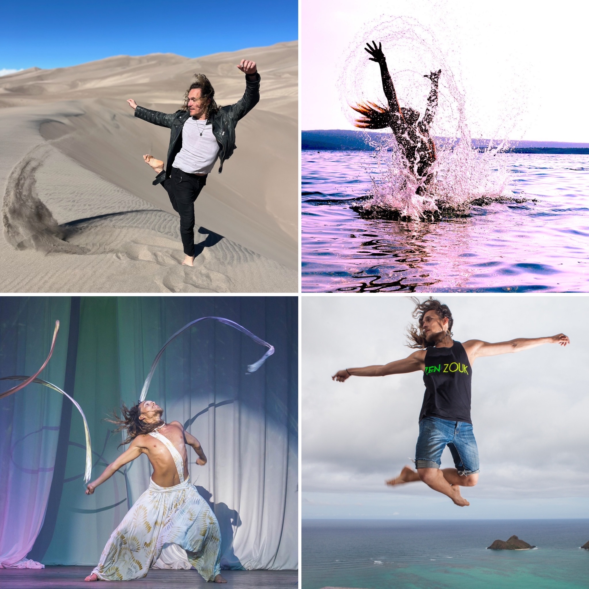 These have an important role in our exploration of movement in each one of my classes, no matter the age or skill level (Geometry shapes, the natural elements – Earth, Water, Fire, and Air, as well as many other images like sexy turtles, Zentaurs, happy armpits, flamingos, crickets, sexy sharks, and many more that continue to emerge year after year). This mirage of concepts and mindsets I have develop is what I call R.A.D method for Lambazouk (Ryel Art Dance).