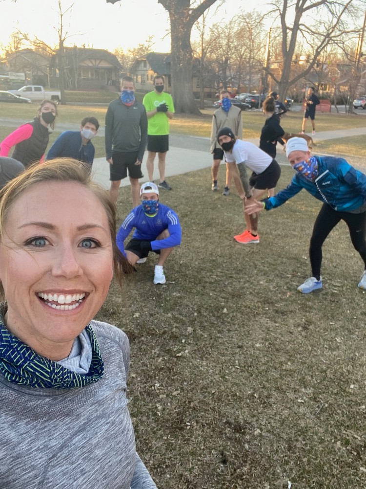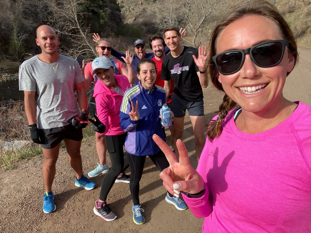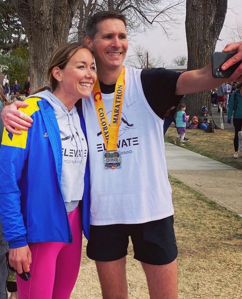 My intent is to make people feel seen and heard, I’ve come to realize that a lot of people are looking for connection and for someone to believe in them – this is a big piece to the Elevate Your Running coaching philosophy. I have an amazing group of athletes who all come together to support each other around the country in training, races, and recovery periods. Each athlete receives individual support, personalized training and attention they deserve to reach their potential through training and race morning. I call this, “lifting them high”. Lifting them high builds confidence. That confidence begins to seep into everyday life, on and off the road. It starts to impact their significant others, families, and community. Also, the ability to see the physical and mental changes with the in-person Elevate Denver team is one of the best gifts coaching has given me. I love running + seeing athletes change and evolve into stronger versions of themselves – this comes through in my energy and passion when I’m with my team, a win/win!