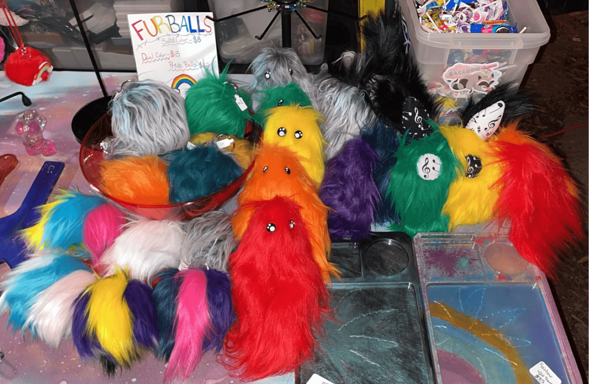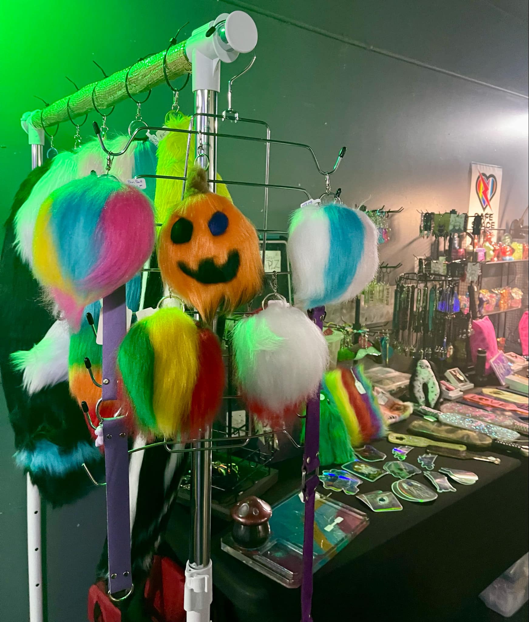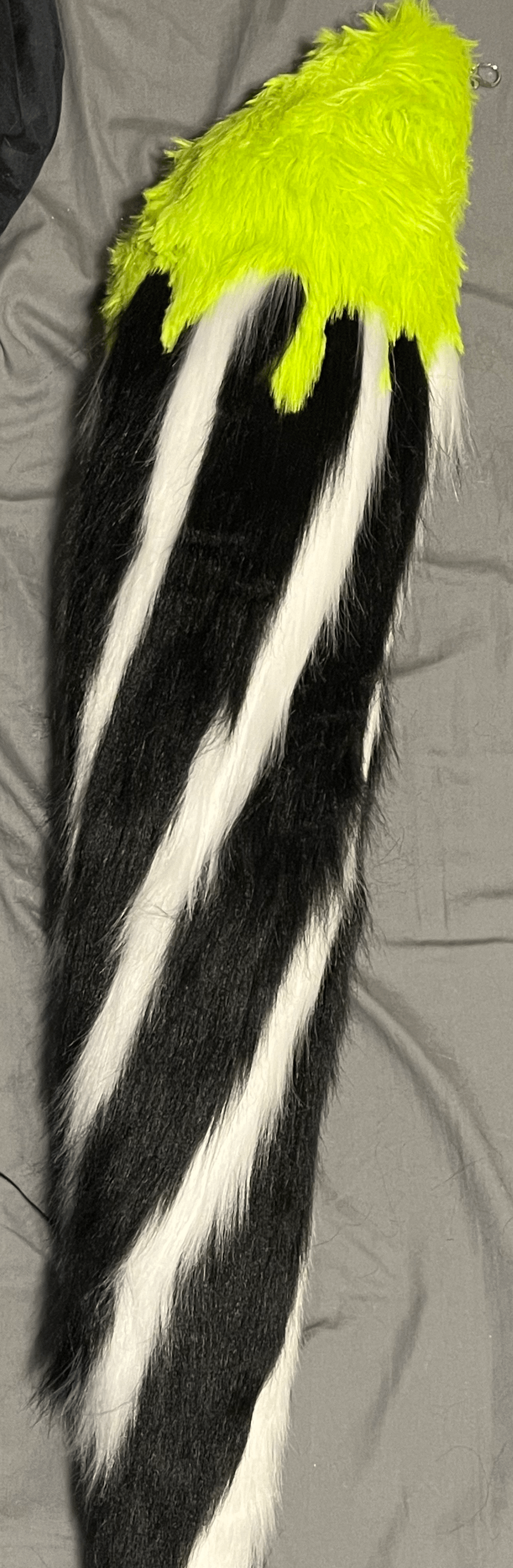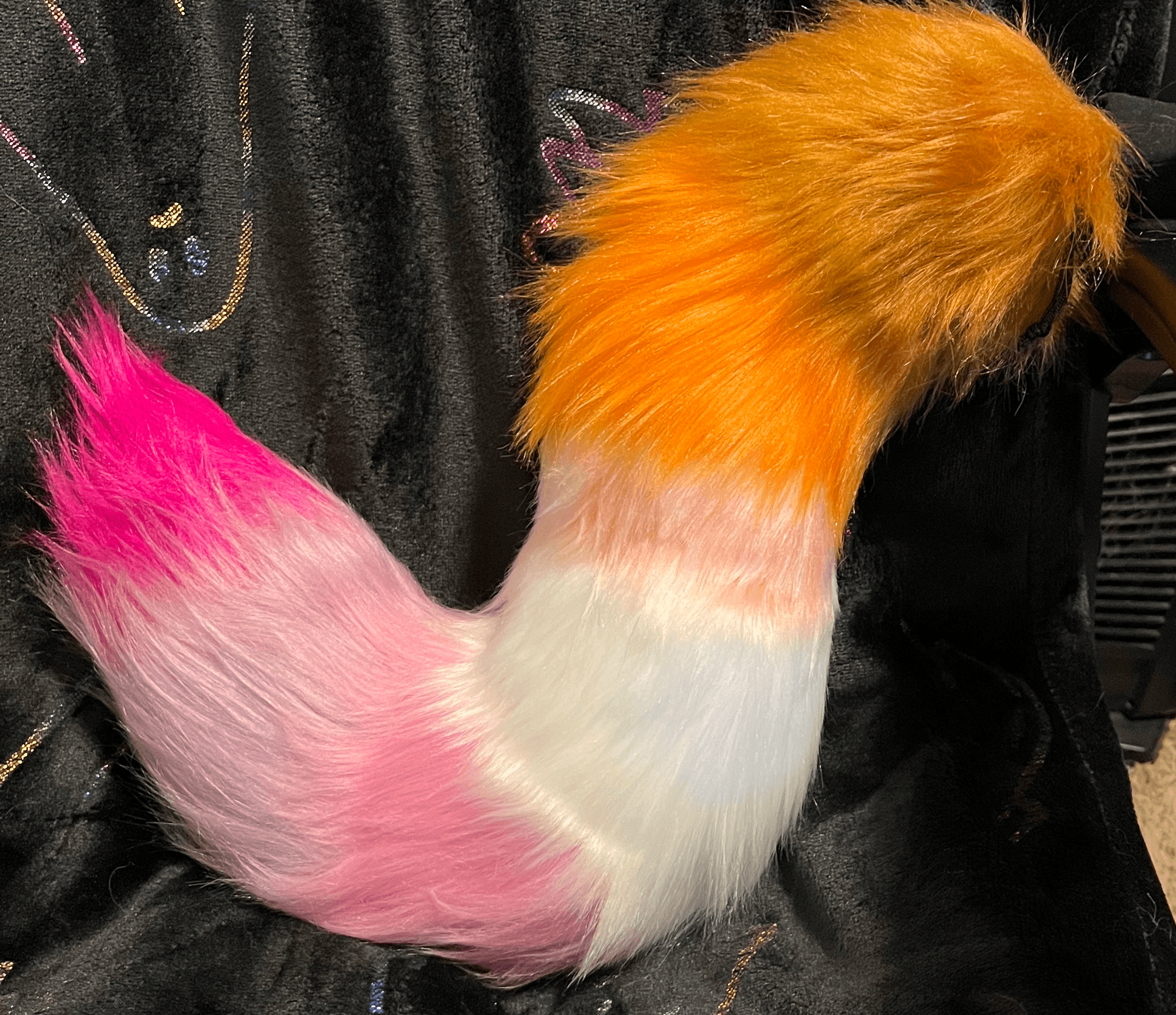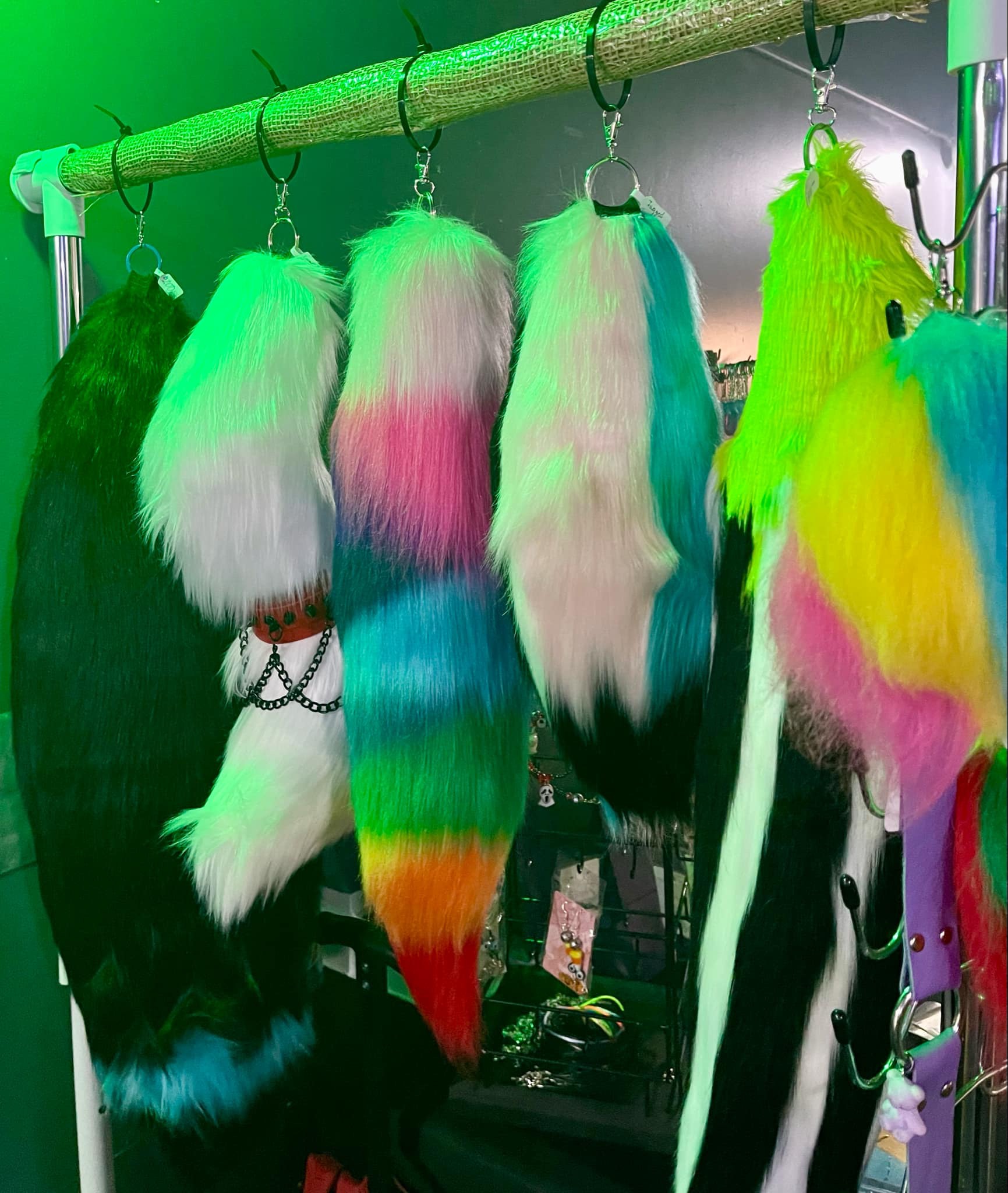 I grew up watching my mom make so many amazing and beautiful one of a kind jewelry and mask pieces. She started to show me how to make jewelry and I fell in love with all the wild and intricate designs we could create. When people would see her work and how their attention would be caught so quickly by all the unique pieces. I was shown how to make one small tail about 6 years ago and ever since I have loved the process of making tails. I hand sew every piece and it takes a long time but I find it most relaxing and therapeutic.