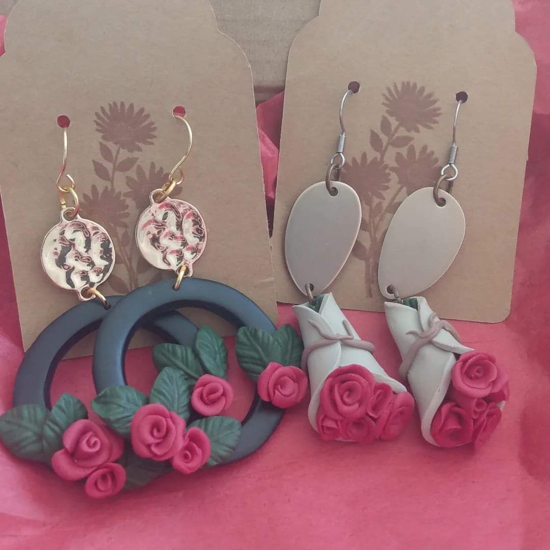 Ever since I was young I have these memories of being so drawn to create things with my own hands. My mom really had a big impact on motivating me to pursue my dreams and that I could create anything I wanted. My creativity began with my love for baking. My grandma would bake and I would be right there with her learning everything along the way. I would sit for hours with recipe cards and magazines dreaming of the day I could create my own beautiful cakes. I went on to try and purse my career in baking but life had a different path for me. I remember the day that I knew I had to drop out of college. It was a cold, rainy day and I had to take the city bus to the college to let them know I was dropping my courses. I got on the bus, I sat down, I looked out the window listening to my music trying my best to hold back my tears. When I noticed a little old man waving to get my attention, I looked up and took my headphones off to hear what he had to say. When then he opened a little tin filled with the most beautiful rose pins. He said to me that he makes these pins and he carries them around for when he find someone that he feel deserves one. I smiled and said they were beautiful and he told me ” Pick one, I want you to have one”. I was hesitant and told him no they were too beautiful he should save them for someone else but he insisted that he wanted me to have one. I smiled, while holding back tears and picked one tiny beautiful rose pin out of the tin and told the man Thank you. I never saw him again but I knew I would cherish the rose forever and still have it until this day. Years passed and I saw a video of a woman creating earrings out of a medium called polymer clay. A medium that I had never heard of before. It was then that I realized that the rose pin from years ago that was given to me was made with that same medium. I have always believed in signs that show us we are on the right path in life. I believe that day when I was given that rose was a sign that even though one artistic career ended another one would begin one day. To my surprise polymer clay and cake decorating have very similar techniques so I still am able to use my past skills. I really am blessed to be able to have a career that I get to create beautiful works of art every day.