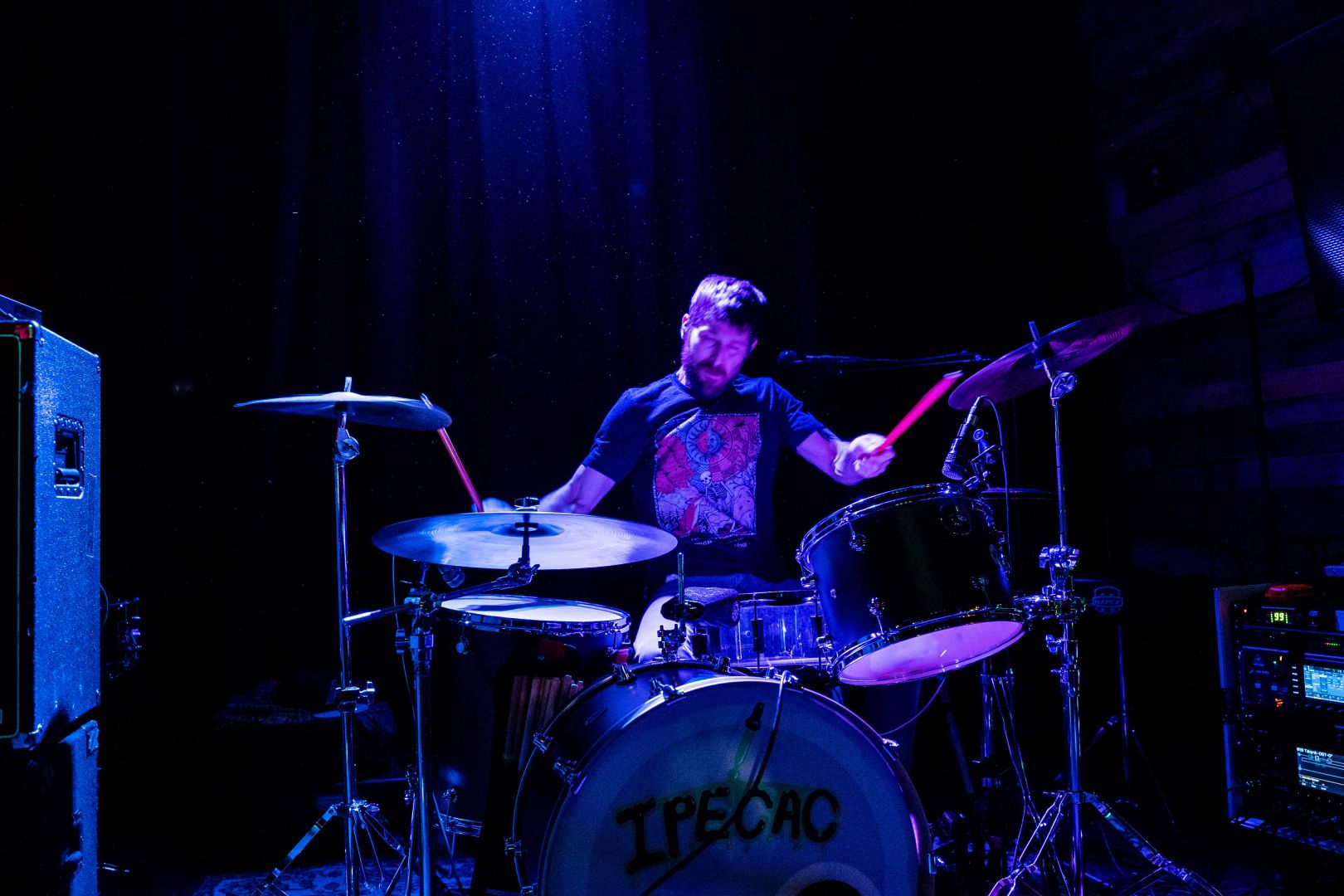 Fast forward to today, we have our second record soon on the way, as that is being mixed right now by our friend, recording, mixing, and mastering engineer Brad Smalling at Evergroove Studio, where we also did our first record. Ethan, an extremely talented musician, and former recording and mixing engineer has joined the Takipnik family along with his gigantic custom 7 string bass. Our new songs are long and much more complex, incorporating odd time signature changes which can get tricky performing on stage playing with a click. We are clock synced to Ableton Live running the backing synthesis during our performances. I’m not exactly sure what sub-genre we fit into, and I don’t really care all that much. What I do know, is that we play and write with integrity and trust our hearts in what we do. I’ve played music for a long time, and never have I played with such an awesome group of talented guys.