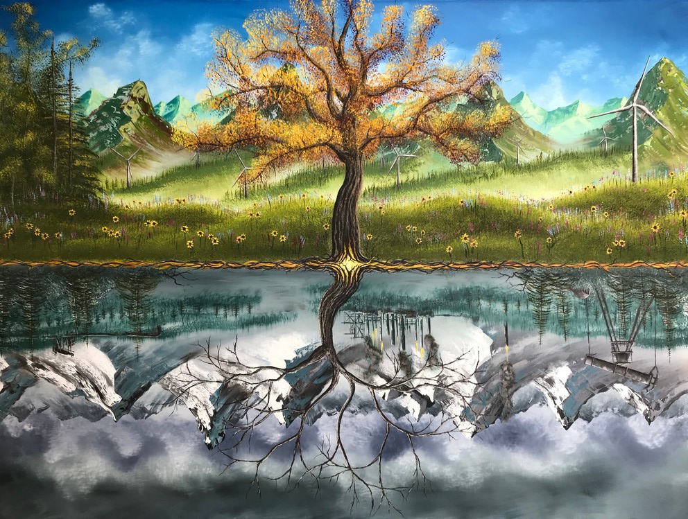 Most of my time and creativity is focused on painting as of recently, however I am utilizing the skills I learned in school as an industrial designer and applying them in the world of furniture design. With painting I am driven by surrealism similar to the work of Salvador Dali. I enjoy creating interesting, surrealistic, and vividly striking landscape paintings. Often times telling a political story and other times thought provoking and whimsical while open for interpretation. I think art should be fun and captivating so I try to be unusually different while relevant in the story I am conveying.