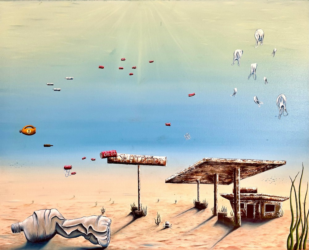 Most of my time and creativity is focused on painting as of recently, however I am utilizing the skills I learned in school as an industrial designer and applying them in the world of furniture design. With painting I am driven by surrealism similar to the work of Salvador Dali. I enjoy creating interesting, surrealistic, and vividly striking landscape paintings. Often times telling a political story and other times thought provoking and whimsical while open for interpretation. I think art should be fun and captivating so I try to be unusually different while relevant in the story I am conveying.