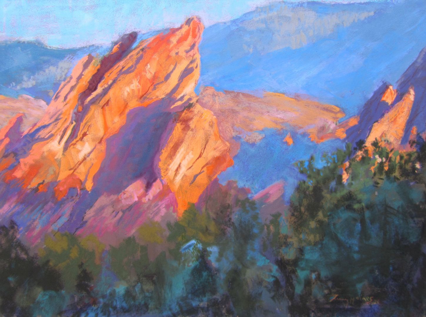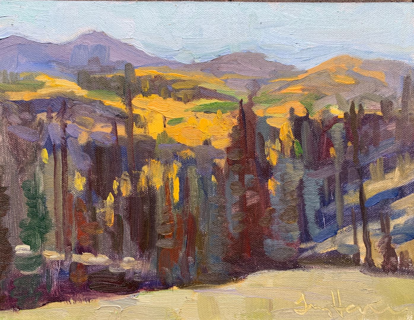 When I was a pre-medical student at the University of Austin all of my friends were in the art department. I admired their creativity and wished I’d been born with some of that talent. I had never done well in art classes and couldn’t draw. Then one day someone gave me a book called Drawing on the Right Side of the Brain by Betty Edwards. I started in on some of the exercises in that book and quickly realized I can draw. Anybody can draw! But I became too busy when I entered medical school to pursue art. Then husband and kids came along… So it wasn’t until the kids were all in school full-time that I picked up art again. I took classes and workshops and within a few years started to sell my art. I have always been enamored by the beauty of the landscape. To finally find an outlet in painting to express the great joy I feel from that beauty has been one of the greatest pleasures in life.